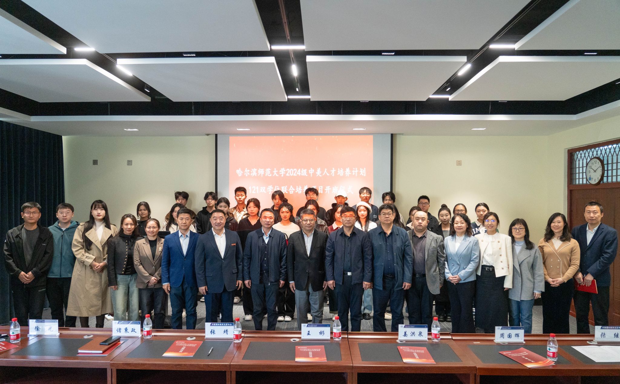 我校2024级《中美人才培养计划》121双学位项目实验班开班仪式2024年10月11日9:00在松北校区崇师楼B318室召开。中教国际教育交流中心主任张靖、合作发展部主管张继、国际交流合作处处长王彬、教务处处长姜洪泉、招生工作处处长诸秉政、计算机科学与信息工程学院院长周国辉、足球高清直播 院长徐光出席会议,相关学院副院长、专业系主任、专职辅导员、班主任及2024级121项目全体新生参加会议,开班仪式由国际交流合作处副处长卜文斌主持。