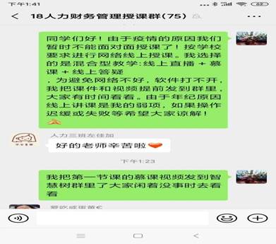 利用网络授课给每位老师带来了新的挑战,同时带来了新的机遇。既是疫情突发的应变之举,也是信息化时代学院云课堂模式的探索与尝试。我们将共同见证一段难忘的时光,同学们,你们的付出一定会得到应有的回报,为未来交上满意的答卷!