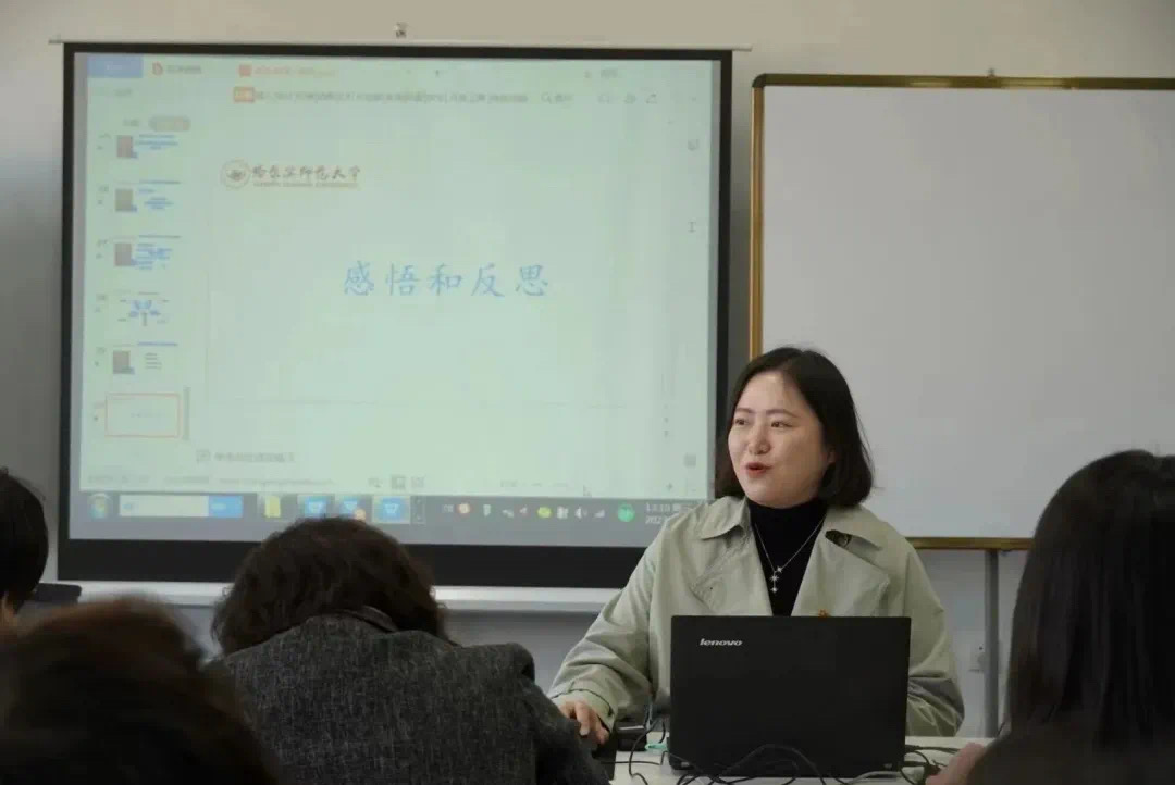 会议第一项,由哈尔滨师范大学首届课程思政大赛二等奖获得者许冰老师分享课程思政大赛参赛经验。许冰老师着重针对大赛中现场授课及案例教学的部分为参会教师讲解参赛思路,提出在课堂教学中引入现实的案例去引导学生思考,并分享了参赛感悟与反思。同时,许冰老师强调区分比赛与课题申报二者的着重点,提醒各位教师着重教学实践成果。