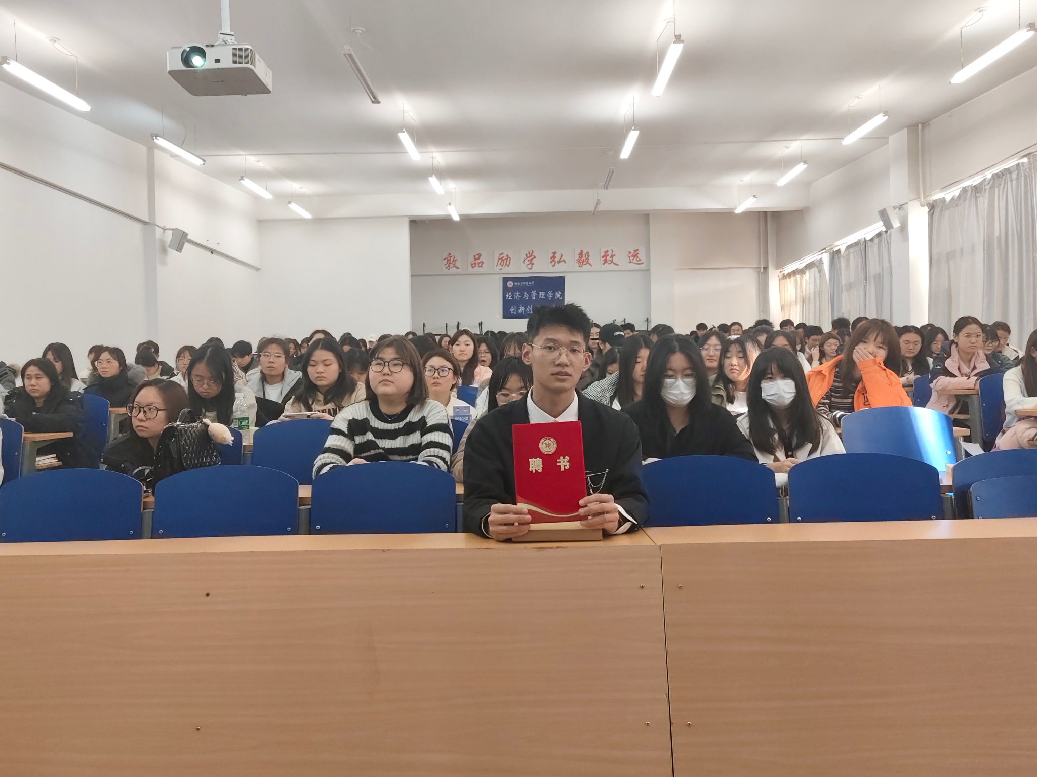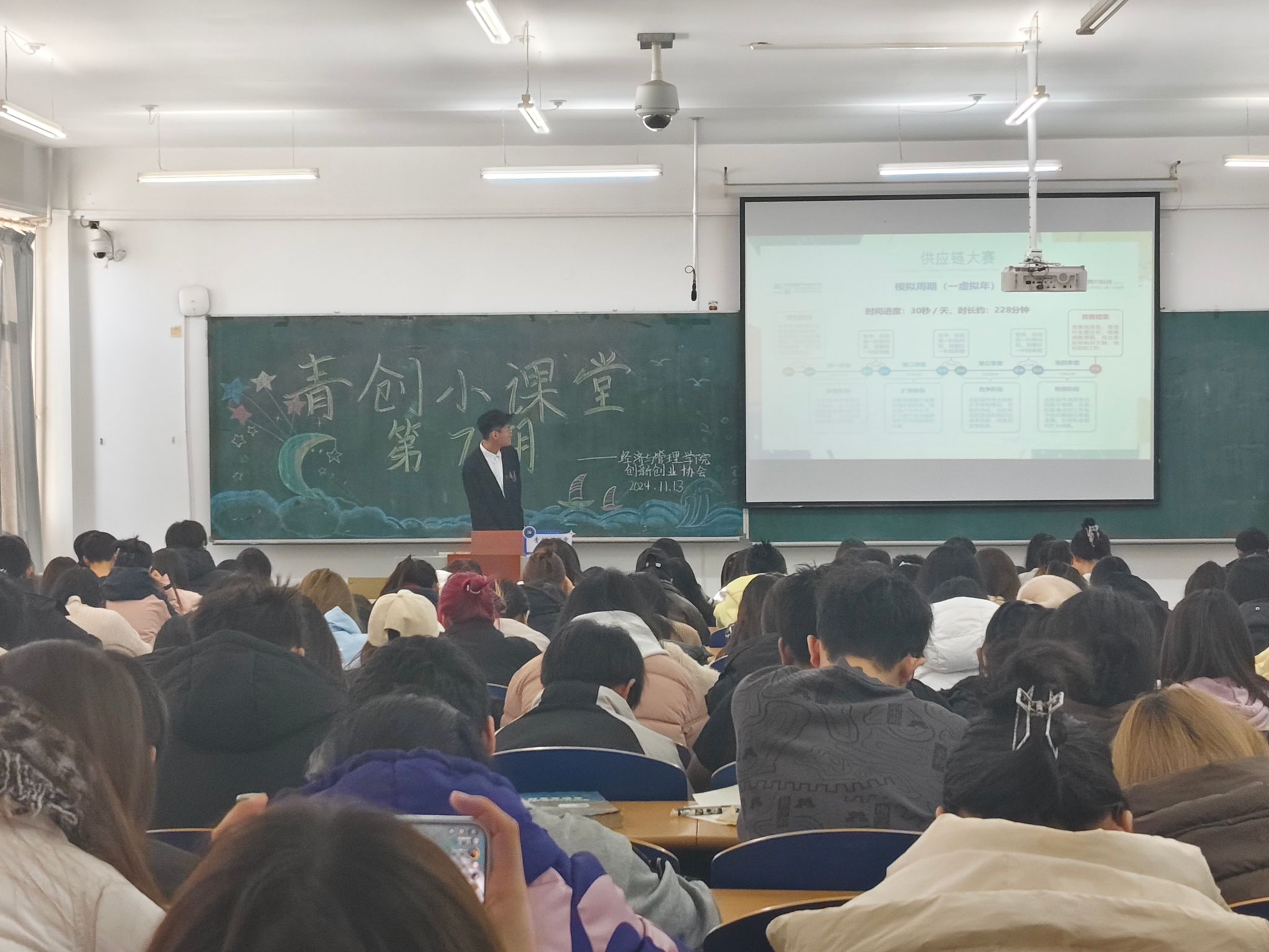 2022级物流管理专业郭熹扬同学为主讲人,本次讲座共有200余名学生参加。