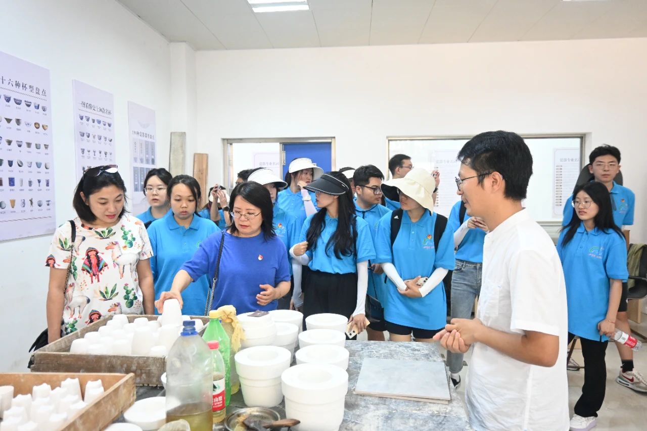实践团在福建省优秀科技特派员许国发带领下参观调研了闽清县白中镇陶瓷科技孵化园,了解科技特派员“N+1服务模式”在该孵化园创建发展及助力当地乡村振兴中发挥的作用。闽清陶瓷具有悠久的历史,在党和政府大力扶持下,在科技特派员“N+1服务模式”助力下,积极挖掘陶瓷文化、发展陶瓷产业、创新陶瓷科技,成功申请“闽清陶瓷”“闽清青白瓷”两个国家地理商标,逐步巩固“东南新瓷都”的产业优势。