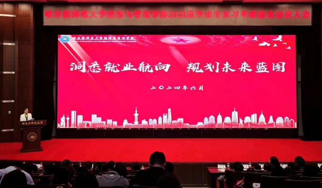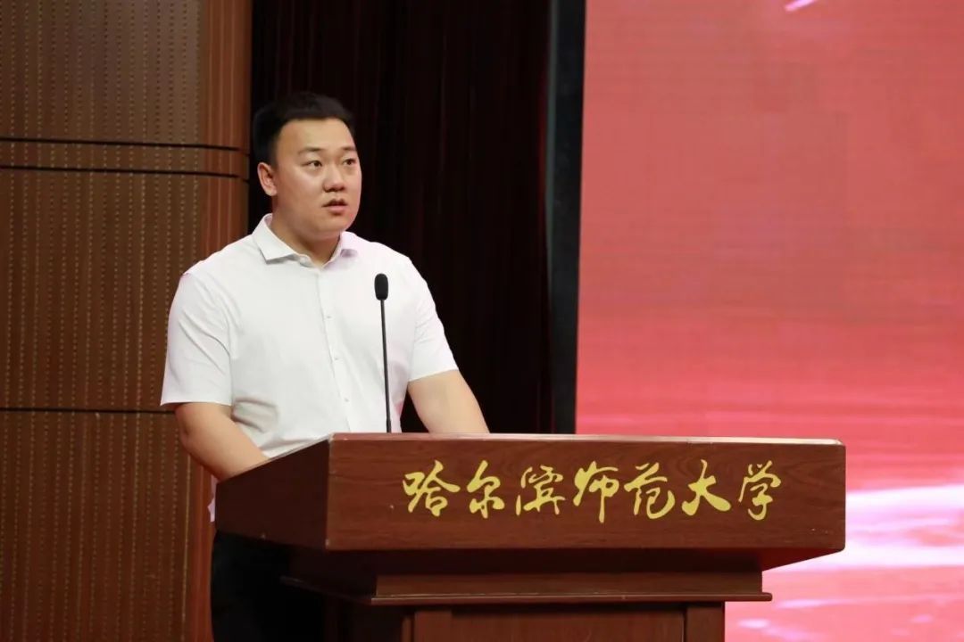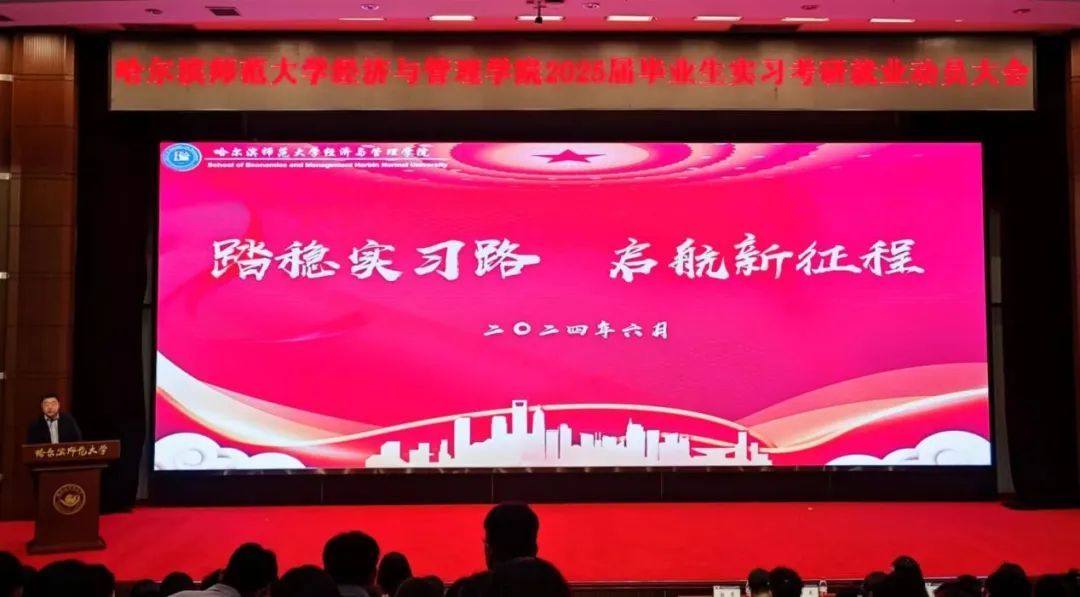 大会第五项,企业宣讲。黑龙江省青协人力资源有限公司负责人仇东亮向同学们分享了实习期间的工作环境,薪资待遇,设置岗位以及未来晋升条件。他详细介绍了每个岗位的具体职责,让同学们清楚自己在工作中将会承担的任务和责任,同时,他也向同学们介绍了就业政策、求职地域及行业选择,帮助同学们更好地理解企业的运作模式、团队合作精神和创新理念,激发了他们对未来工作的期待和热情。