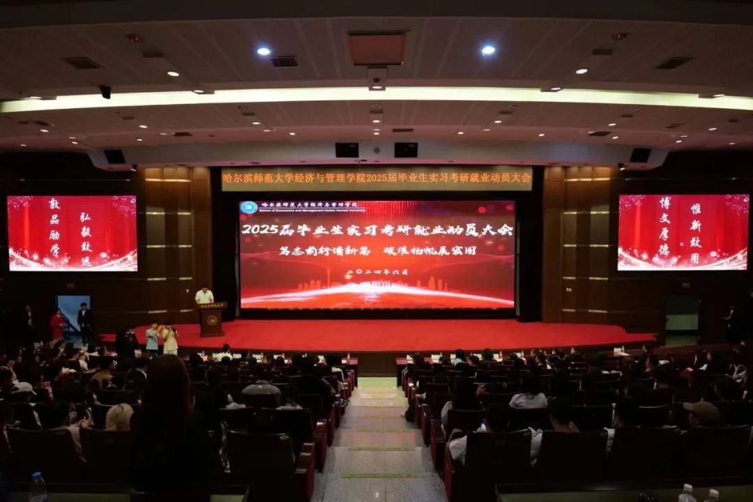 在科学会堂举行2025届毕业生实习就业考研动员大会。学院党委书记蒙国军、院长徐光、党委副书记翟力、副院长李桃、副院长祁凯、各系主任及系副主任、2021级辅导员、企业代表仇东亮及2025届全体毕业生参加会议。辅导员金东旭主持会议。