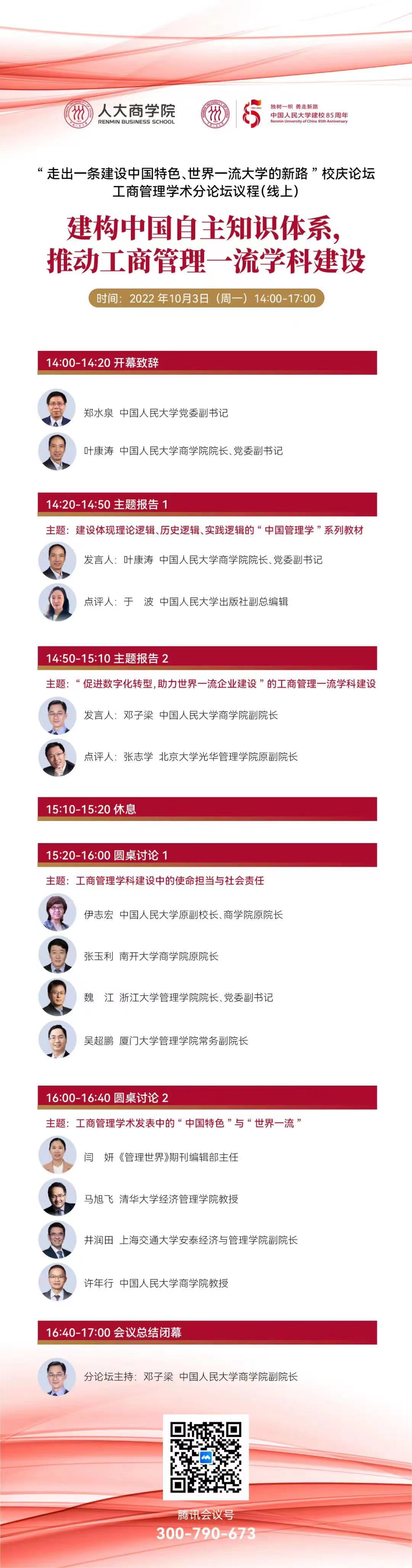 人大商学院——“走出一条建设中国特色、世界一流大学的新路”校庆论坛 工商管理学术分论坛议程