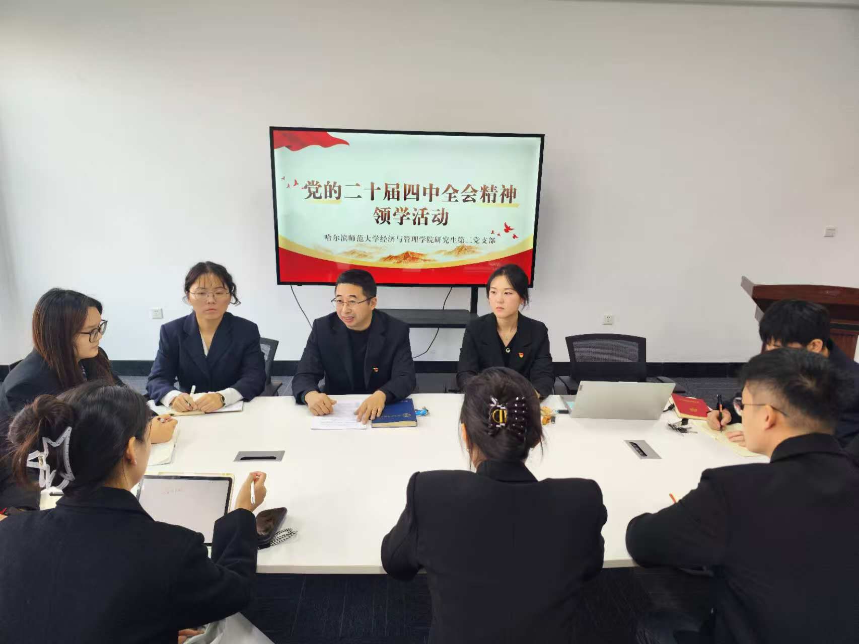 研究生第二党支部于2025年11月6日下午,在崇师楼B316召开了党的二十届四中全会精神专题领学活动。本次领学由研究生第二党支部书记赵东威担任主讲,研究生第二党支部党员参加本次活动。