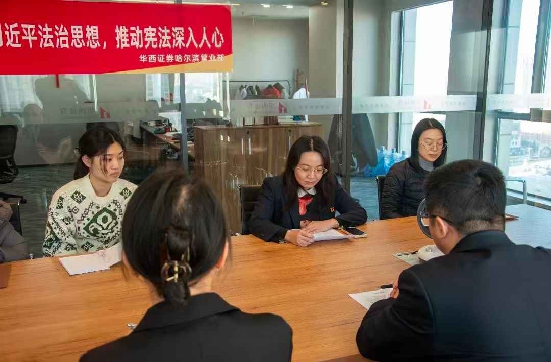 活动围绕宪法精神与金融法治宣传展开,华西证券哈尔滨第五十八党支部书记邱波同志紧扣习近平法治思想,结合学生在校学生可能遇到的隐形金融陷阱,从树立宪法意识和掌握法律工具两个方面进行深入宣讲。她介绍了宪法对资本市场健康运行的重要意义,以及金融法规如何保护投资者权益,强调了解宪法和金融法规的内在联系是树立正确投资观的第一步;同时他警示同学们远离非法投资风险,面对金融陷阱要牢记“三不”原则:不要轻信高收益承诺,不要向陌生人的账户转账,不要出借个人的银行卡、证券账户等,同时警惕校园贷、消费贷等诱导性宣传,远离超前消费陷阱,坚守法律底线和财务理性。“每一次理性的维权,都将成为我们弘扬宪法精神的具体实践。”她鼓励同学们在权益受到不法侵害时,要善用法律手段,通过正规途径去捍卫自身权益。