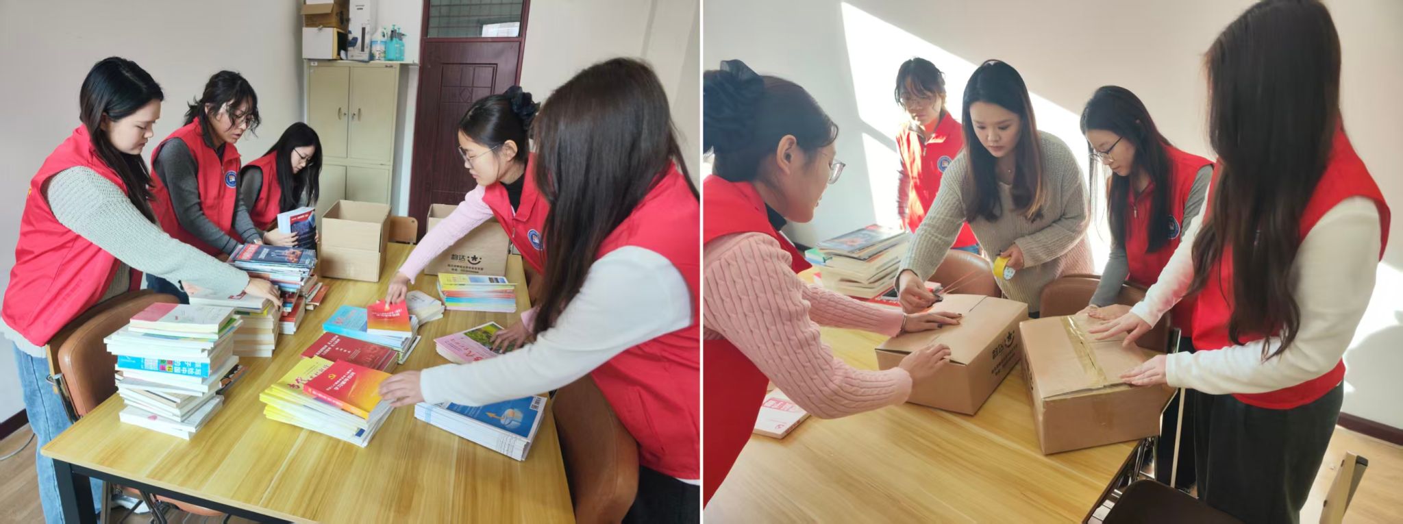 活动结束后,志愿者迅速组建分类小组,秉持严谨细致的态度,将所有捐赠书籍按“农用技术”“科普知识”“生活百科”等类别逐一清点,确保每一本书精准分类、打包整齐。清点后,志愿者采取快递方式将书籍邮寄至共建单位——虎林市东诚镇仁爱村。