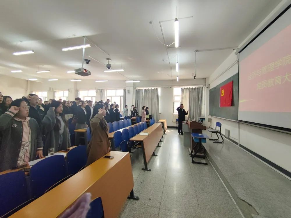 会后辅导员金东旭老师带领研究生党员重温入党誓词,鼓舞党员同学在科研和社会服务中艰苦奋斗,争当新时代的优秀共产党员,努力成为社会主义合格建设者和可靠接班人。通过本次研究生党员教育大会,进一步提升了研究生党员队伍的政治觉悟,进一步明确了研究生党员的责任和义务。