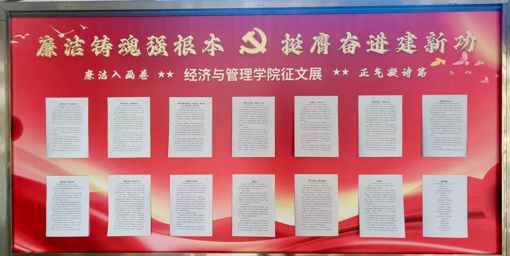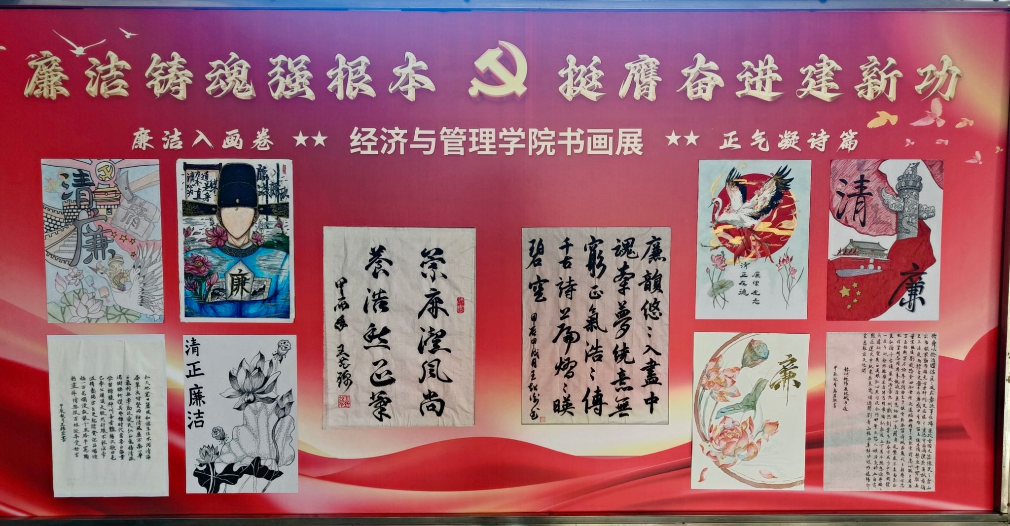 此次“廉魂入画卷,正气凝诗篇”主题作品展活动的圆满举办,在学院营造了“以文化人、以廉养德”的良好氛围,凝聚了倡廉反腐、激浊扬清的巨大能量,引导经管学子强化以廉为荣的思想自觉和行动自觉,时刻保持头脑清醒,从严律己,慎独慎微,坚决筑牢廉洁底线,为推进中国式现代化贡献青春力量。