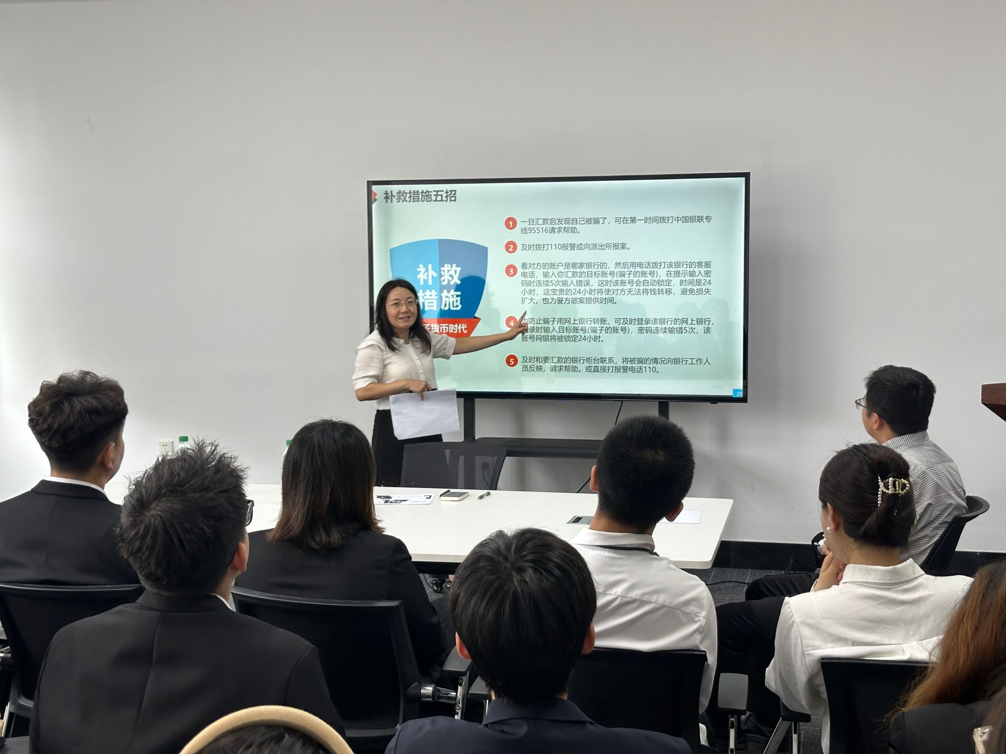 在反诈实操教学环节,邱书记结合公安部最新发布的反诈指南,系统讲解受骗后的黄金处置流程。她用真实案例演示“三步止损法”:第一时间拨打110报警,同步联系银行客服对涉案账户采取紧急止付;详细记录转账时间、金额、账户信息等关键线索;通过“国家反诈中心”APP进行风险自查与举报。