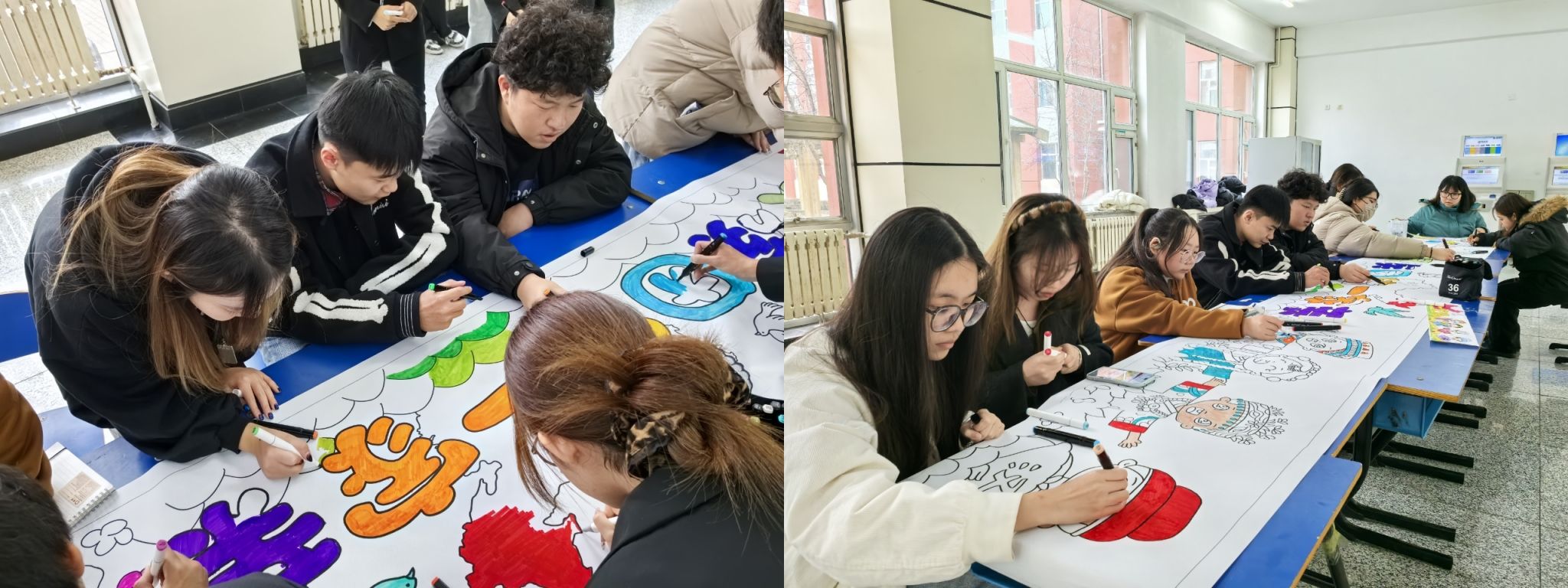 活动以5米长的空白画布为载体,邀请学院各民族学生共赴一场“以画叙情”的文化之约。从前期筹备中征集的各民族特色元素,到现场备好的颜料、画笔,每一处细节都藏着对“民族交融”的期待。