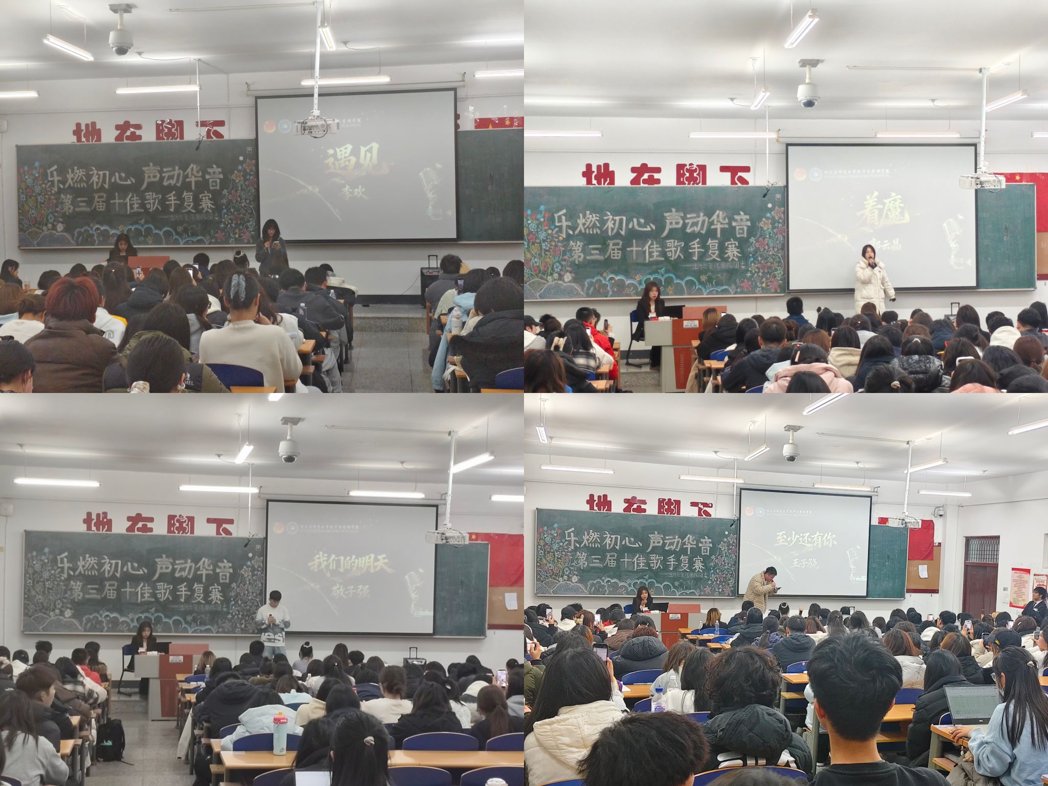 第二届十佳歌手大赛冠军陈宏博、亚军吕晓盈、季军赵文瑞担任评委。