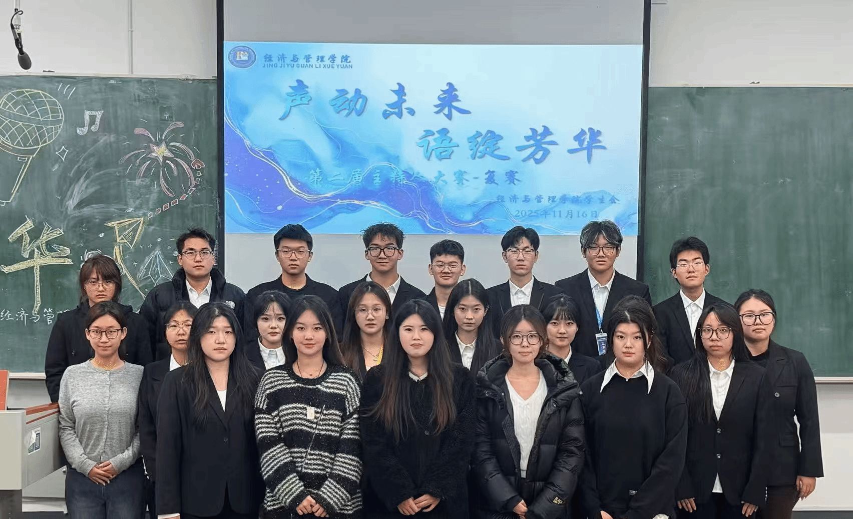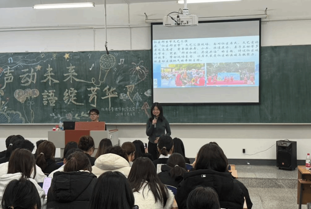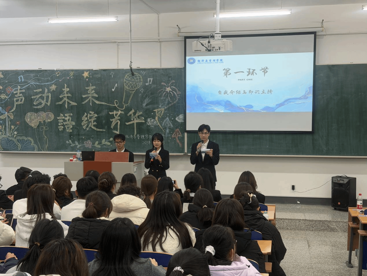 于11月13日在崇师楼c202举办了“‘声’动未来,‘语’绽芳华”主持人大赛复赛,12名在初赛脱颖而出的选手在赛场上以言语为锋、表达作笔,书写独属于经管人的语言锋芒与青春担当。