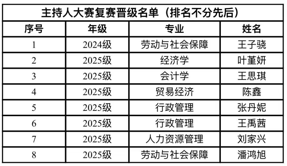 在这场复赛的激烈角逐后,共有8名选手凭借扎实的主持功底与出色的临场发挥脱颖而出,成功晋级决赛。以下是表现优异、进入决赛的选手名单:
