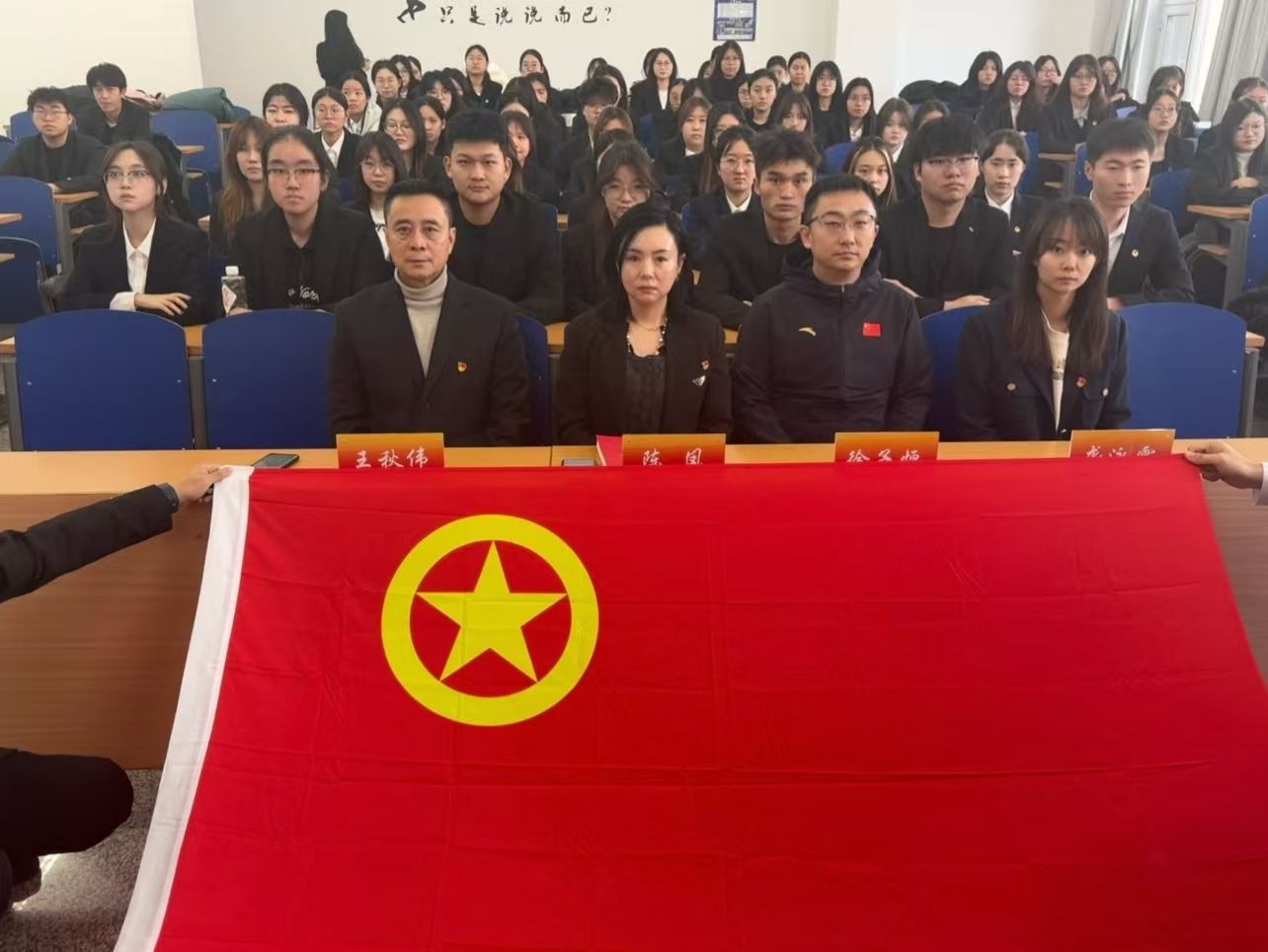 仪式第三项,各辅导员老师依次为新发展团员颁发团员证、团章并佩戴团徽。团徽象征着荣誉与责任,激励新团员坚守理想信念、勇担青春责任,以坚定信念与实干担当书写青春答卷。