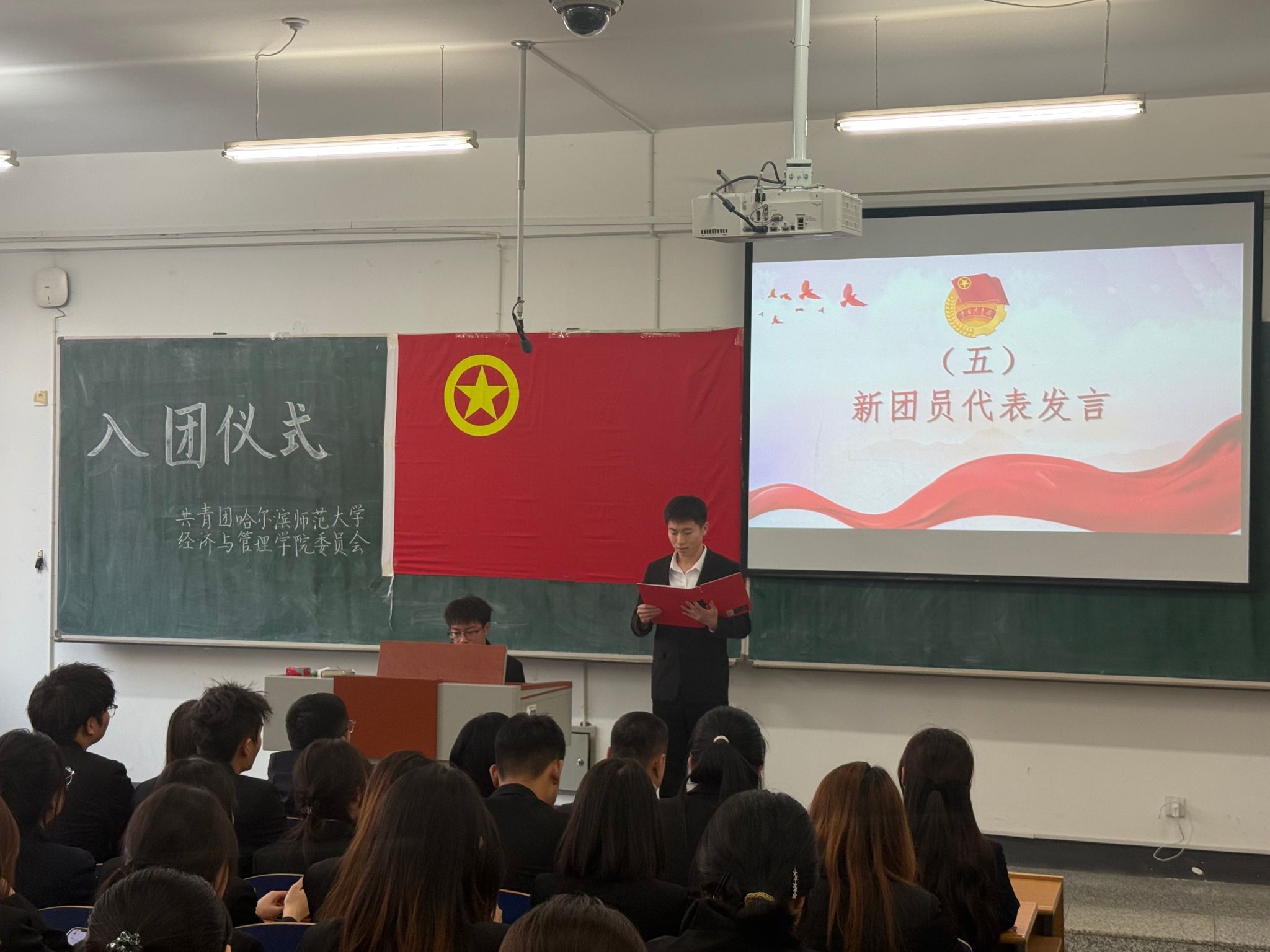 仪式第五项,新发展团员代表徐佳豪上台发言,他郑重承诺将以实际行动践行团员使命,在学习中锤炼本领,在实践中增长才干,在新时代新征程中奋勇前行。