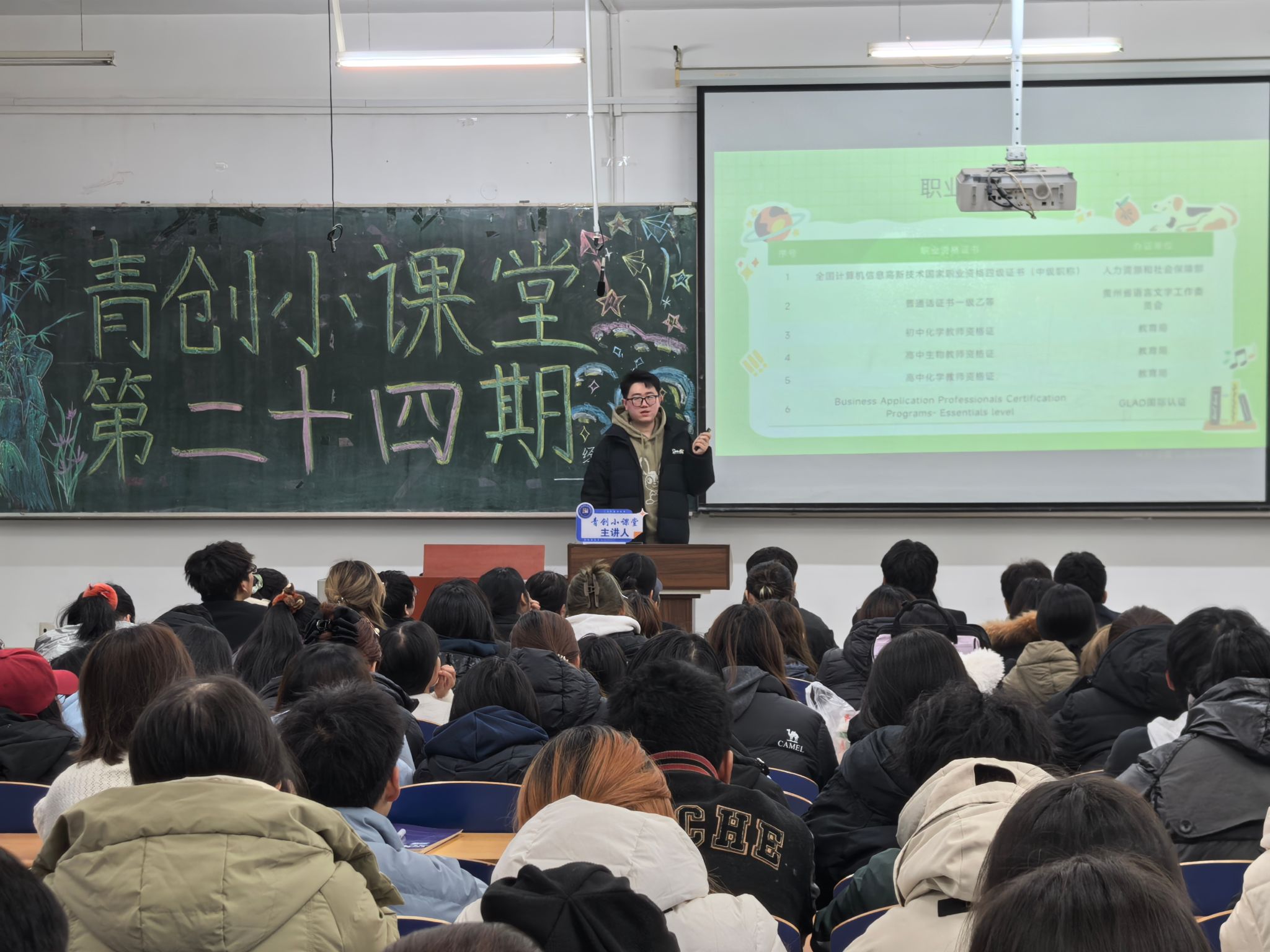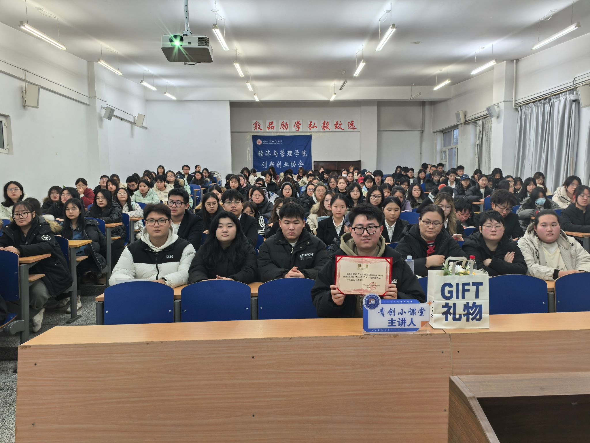 创新创业协会于2025年11月26日14:30在崇师楼D202举办“青创小课堂”第二十四期讲座。本次讲座邀请哈尔滨广厦学院学生韩冠宇同学主讲,讲座共有200余名学生参加。
