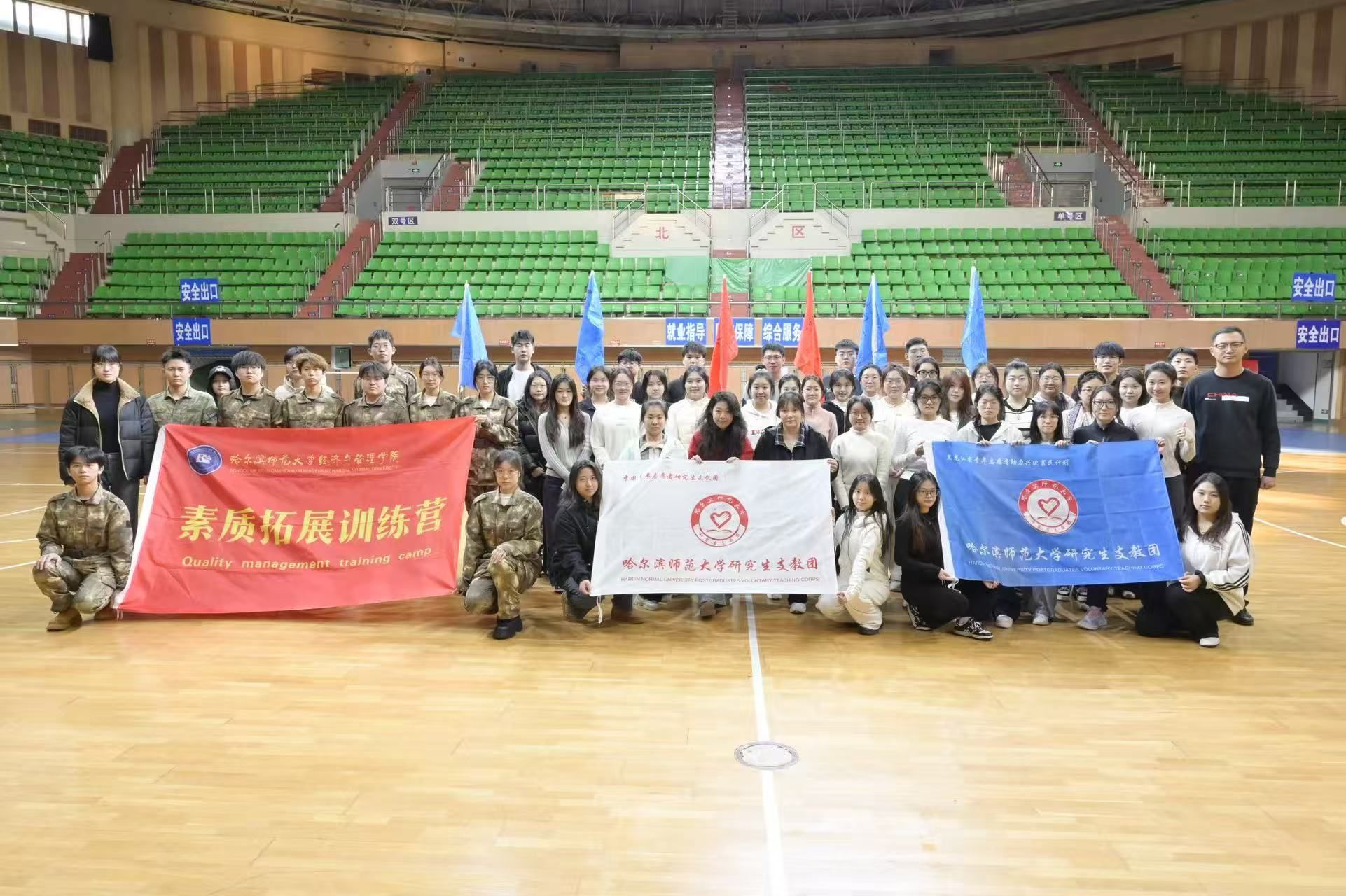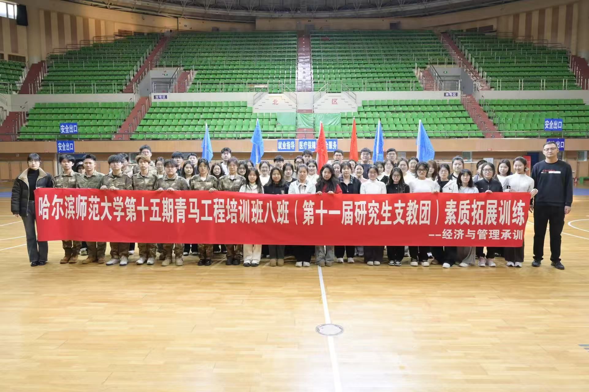 素质拓展训练营受校团委委托,面向第十一届研究生支教团(以下简称“研支团”)成员于松北校区体育馆开展素质拓展培训活动。本次活动旨在通过系统化、体验式的训练,增强研支团成员的团队协作能力、沟通表达水平与心理适应能力,助力他们在未来的支教实践中更快融入角色、更好传递能量。