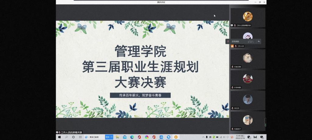 管理学院创新创业协会于2022年3月16日14:00—15:30举办以“传承百年薪火,筑梦奋斗青春”为主题的第三届职业生涯规划大赛,在线上顺利举行。