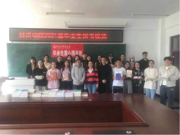 为积极响应学校毕业生离校“十个一”系列活动安排,顺利开展毕业生离校工作,经济学院于5月13日在崇师楼A202举办了毕业生爱心捐书活动。经济学院党委副书记翟力、学工办主任赵东威、毕业年级辅导员王秋伟、以及捐书毕业生代表参加此次捐书活动。