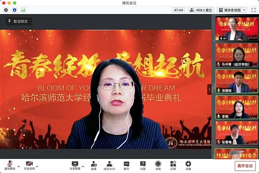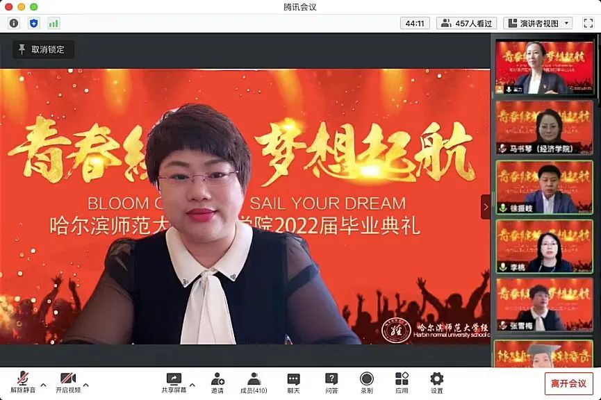 为扎实做好毕业生离校教育“十个一”活动,5月18日下午13:30,经济学院依托腾讯会议平台举行了2022届毕业生“云毕业典礼”。经济学院院长马书琴、党委书记徐振岐、副院长李桃,学院全体教职工和2022届毕业生参加此次典礼。毕业典礼由学院党委副书记翟力主持。