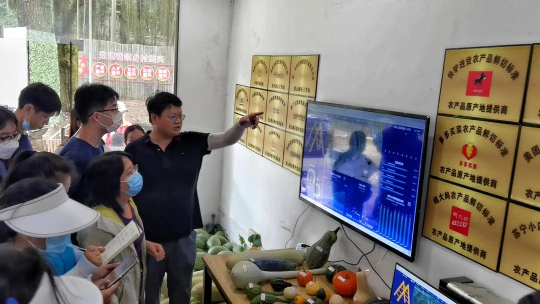 实践团在高山数字农业示范园科技特派员、福建超大现代种业有限公司总经理徐福乐博士的带领下,首先来到数字化种养控制中心。据徐福乐介绍,数字化林下种养殖区利用现代信息技术,通过物联网平台、传感器、溯源系统等数字化手段为灵芝种植和土鸡养殖提供精准管护和预定销售。并在种养区基本实现了“土鸡养殖-鸡粪烘干发酵-还田”的生态循环,促进了农业可持续发展。随后,实践团在徐博士带领下走进瓜果长廊,了解智慧农业数字化工具在南瓜、丝瓜、佛手瓜等瓜果新品育种和生产上的应用。最后,实践团来到该项目大田种植区,即萤山蝶谷优质农作物新品种百亩示范推广基地。该基地主要选育紫糯米水稻、水果玉米等优质品种,培育智慧农业水培果蔬,采取认养模式,带动农民增收。
