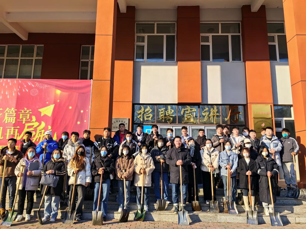 的2022级全体学生在姬晨毓、金东旭、姜健老师的带领下开展了一场分工明确、井然有序的室外扫雪活动,对崇师楼周边、人行道路面上的积雪进行了全面清扫。同学们团结一心,干劲十足,充分展现了当代大学生优秀的精神风貌。