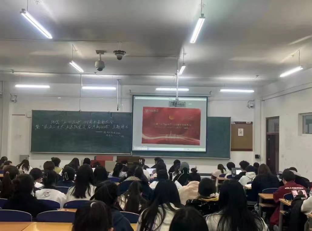 组织全体同学在2023年4月26日于崇师楼各教室一同观看了"记念五四运动104周年表彰大会"视频,掀起了向优秀榜样学习的热潮。