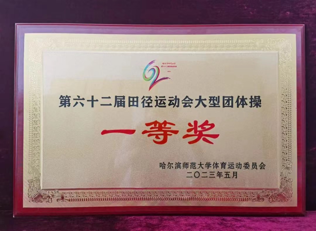 在哈尔滨师范大学第62届田径运动会中进行的《我爱哈师大》大型团体操表演荣获一等奖。