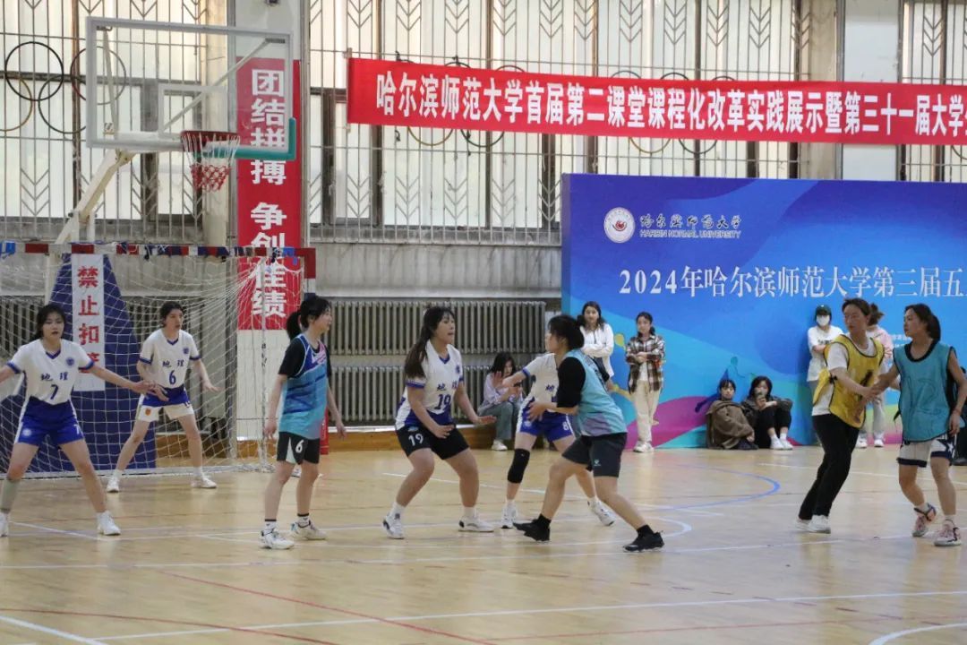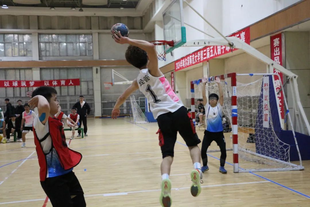 为全面加强体育强国建设,大力弘扬体育精神,进一步增强校园体育文化建设,营造良好校园体育文化氛围,推动学生文化学习和体育锻炼协调发展,2024年5月27日17:30,在体育馆阳光大厅进行了我校第三届五人制手球锦标赛决赛,决赛由足球高清直播