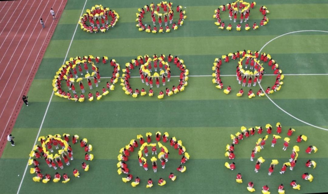 此时,场中变换出9组小方阵,九州大地是中国传统文化中的重要象征,承载着数千年的历史和文化,眼前这9组方阵寓意九州方圆、地大物博、气势磅礴。此刻,方阵又变换为9组同心圆,象征抗日战争时期,全国各族人民团结一心,同仇敌忾,浴血奋战,共赴国难,以星火燎原之势奋起抗争,夺取抗日战争的最后胜利!学子们团结一心、默契协作。她们整齐划一的动作、铿锵有力的步伐,这带来的不仅是视觉的盛宴,更是心灵的震撼,尽显经管学子奋进风貌。