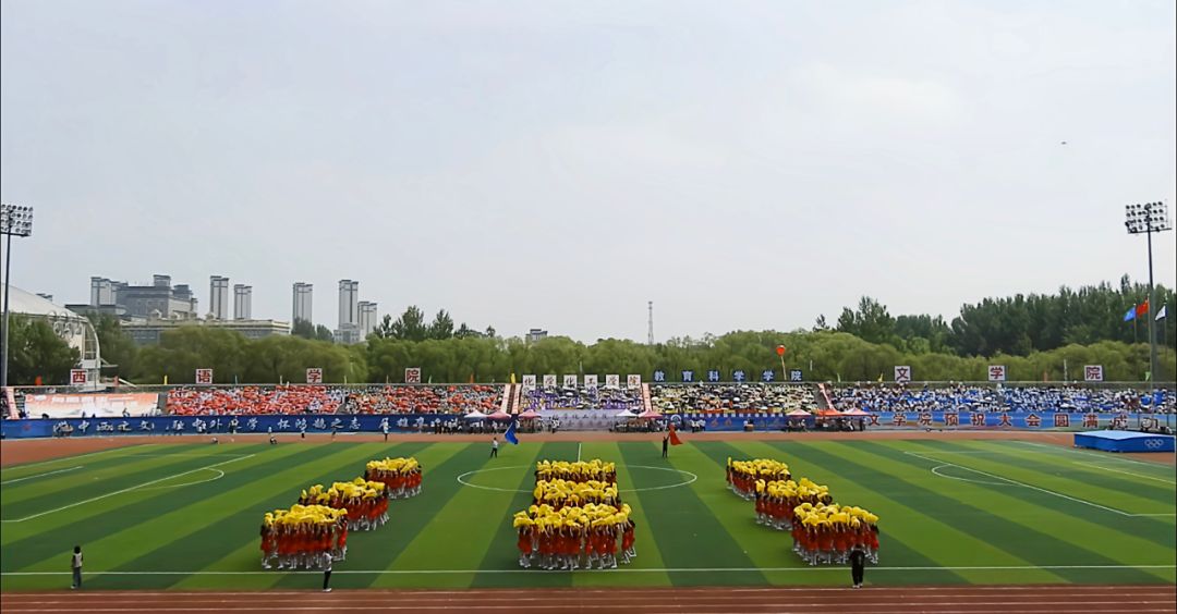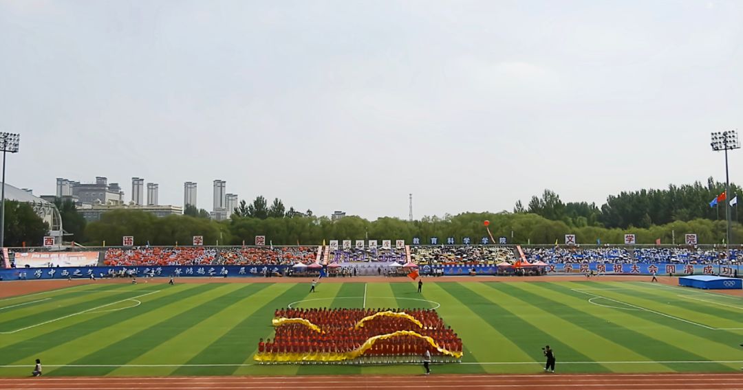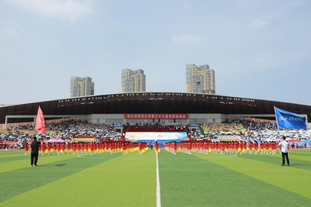 的学子们在哈尔滨师范大学第六十三届田径运动会中,用青春和热情为观众呈现了《保卫黄河》大型团体操表演并荣获一等奖。