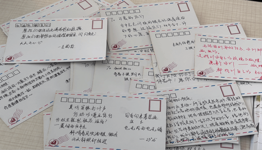 活动现场,同学们通过明信片上的字字句句,对山区留守儿童寄托深情的爱心寄语,它们如同春风化雨,滋润着每一个收到明信片的幸运小朋友。每一张明信片上都寄托着大学生活的青春分享,都将会鼓励山区儿童更加努力学习。