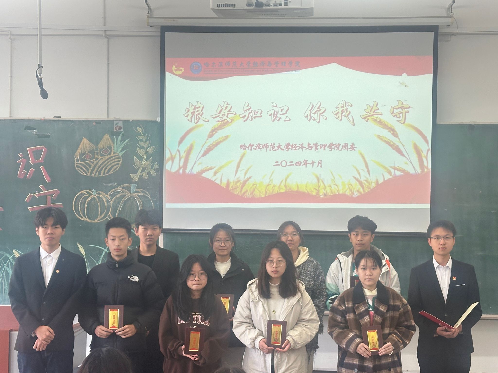 于2024年10月15日在崇师楼C202通过线上线下相结合的方式举办了“粮安知识,你我共守”主题知识竞赛。学院党委书记蒙国军,党委副书记翟力,本科生学生党支部书记代表陈凤、金东旭、李金蔚及学院全体同学参与此次活动。