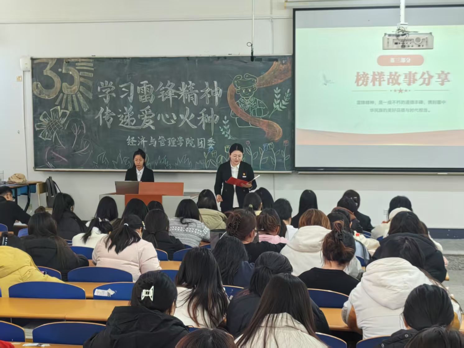 团委于 2025年3月5日在崇师楼D402组织开展“学习雷锋精神,传递爱心火种”故事分享会,学院团委书记陈凤、各年级学生代表共150人参与此次活动。