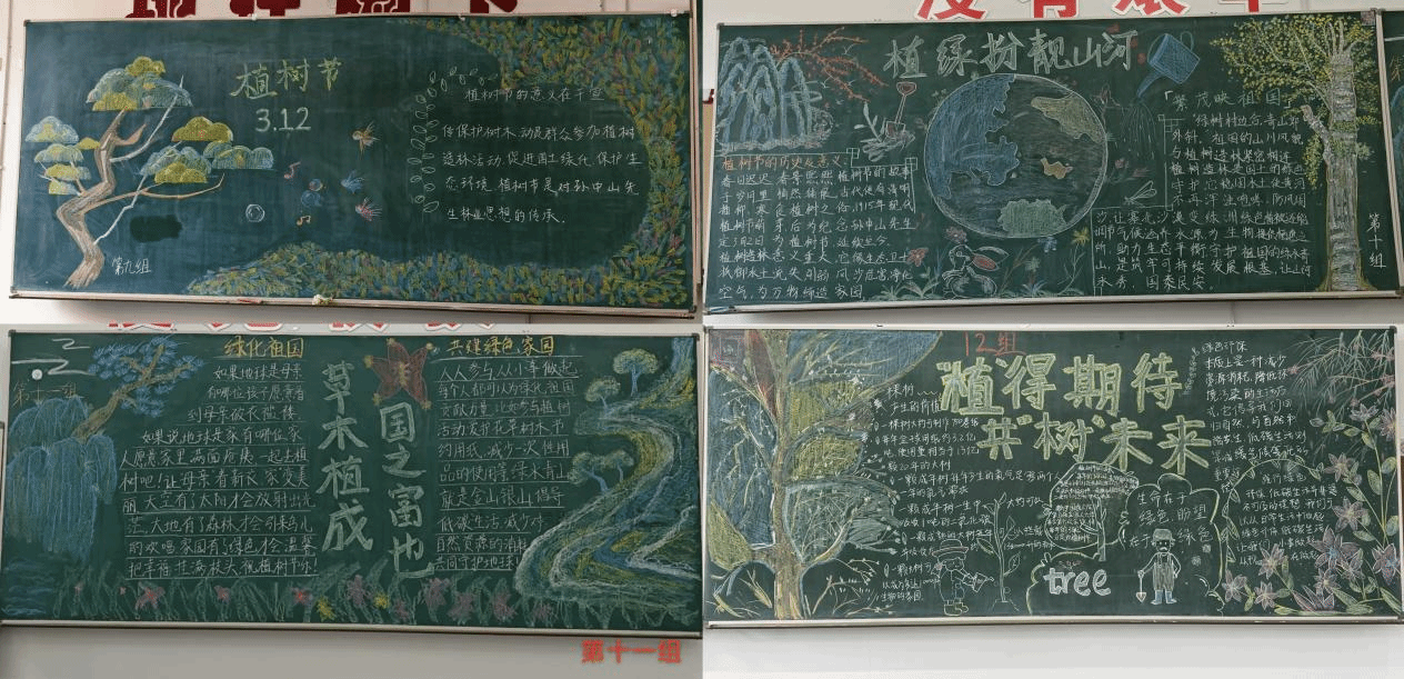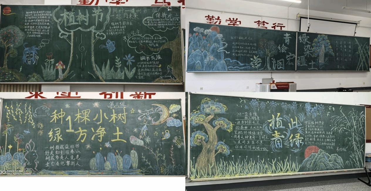 学生会以“绿化祖国,筑梦未来”为主题,组织开展了一场兼具创意与环保精神的板报展示活动。