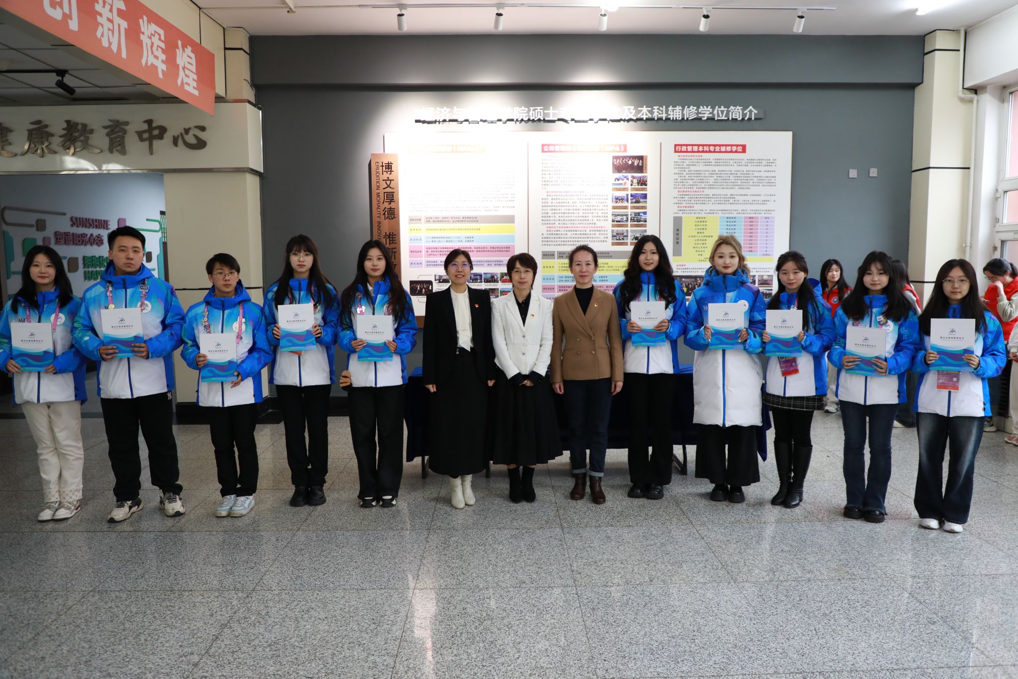 哈尔滨2025年第9届亚冬会志愿者证书发放仪式。学院领导班子成员、全体辅导员及57名志愿者参加仪式,见证这一承载荣光的时刻。