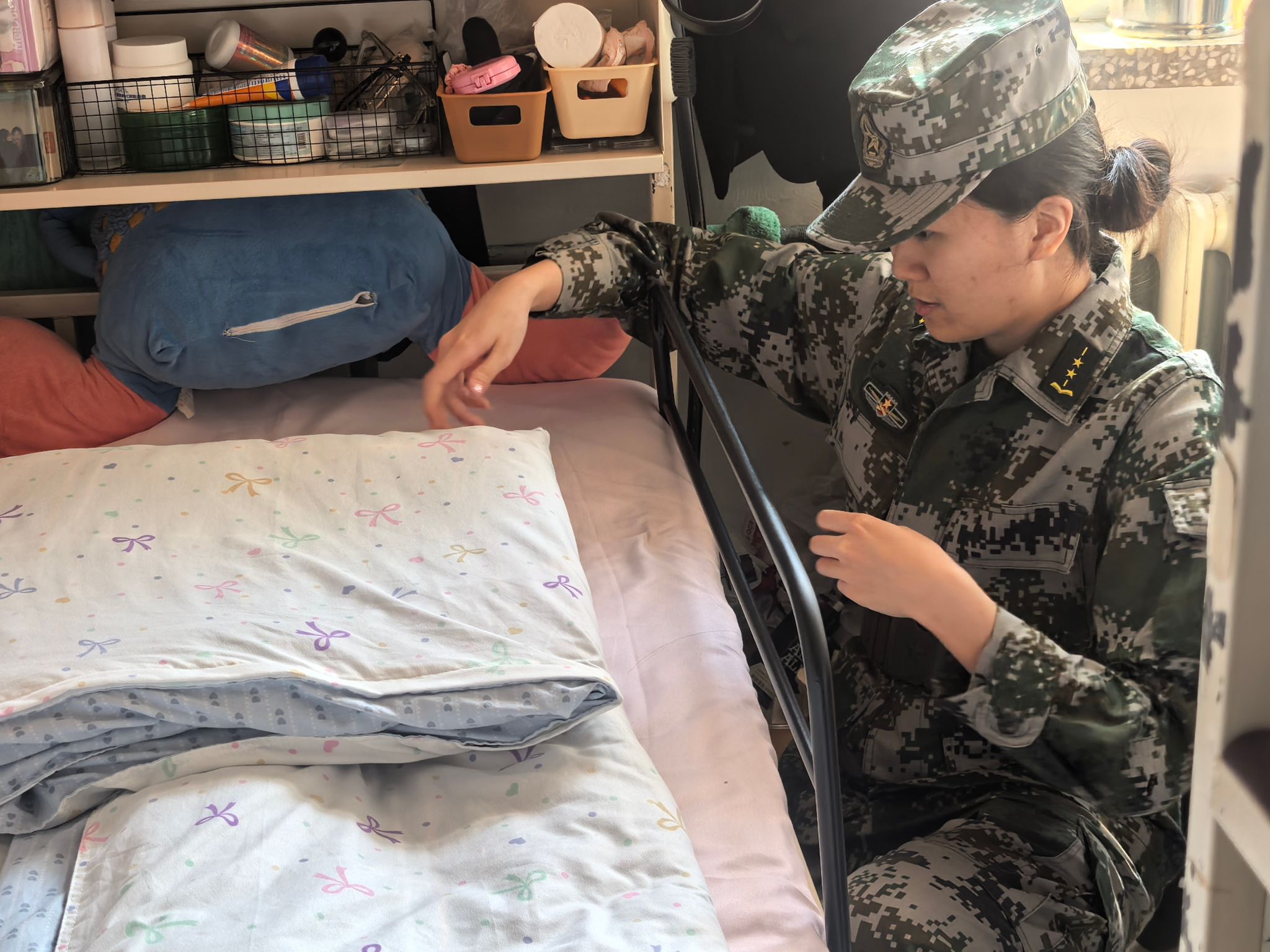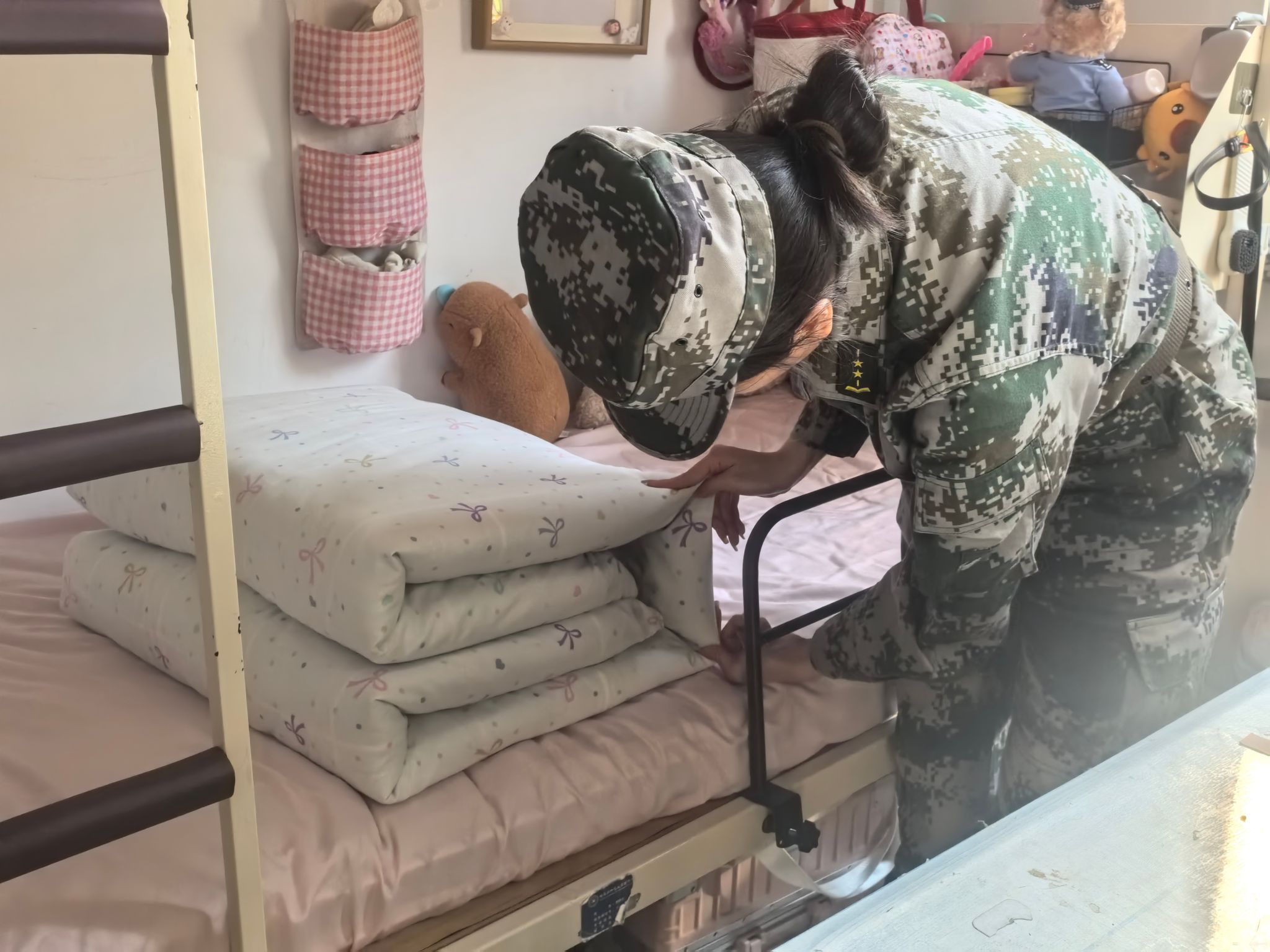 在实践环节中,主讲人深入到学生宿舍,在宿舍现场展示了内务整理的技巧。在讲解过程中明确了内务整理的标准,在实践实践操作过程中,参与的学生现场录制了示范视频,便于让更多同学们切实掌握整理内务的标准、方法和技巧。