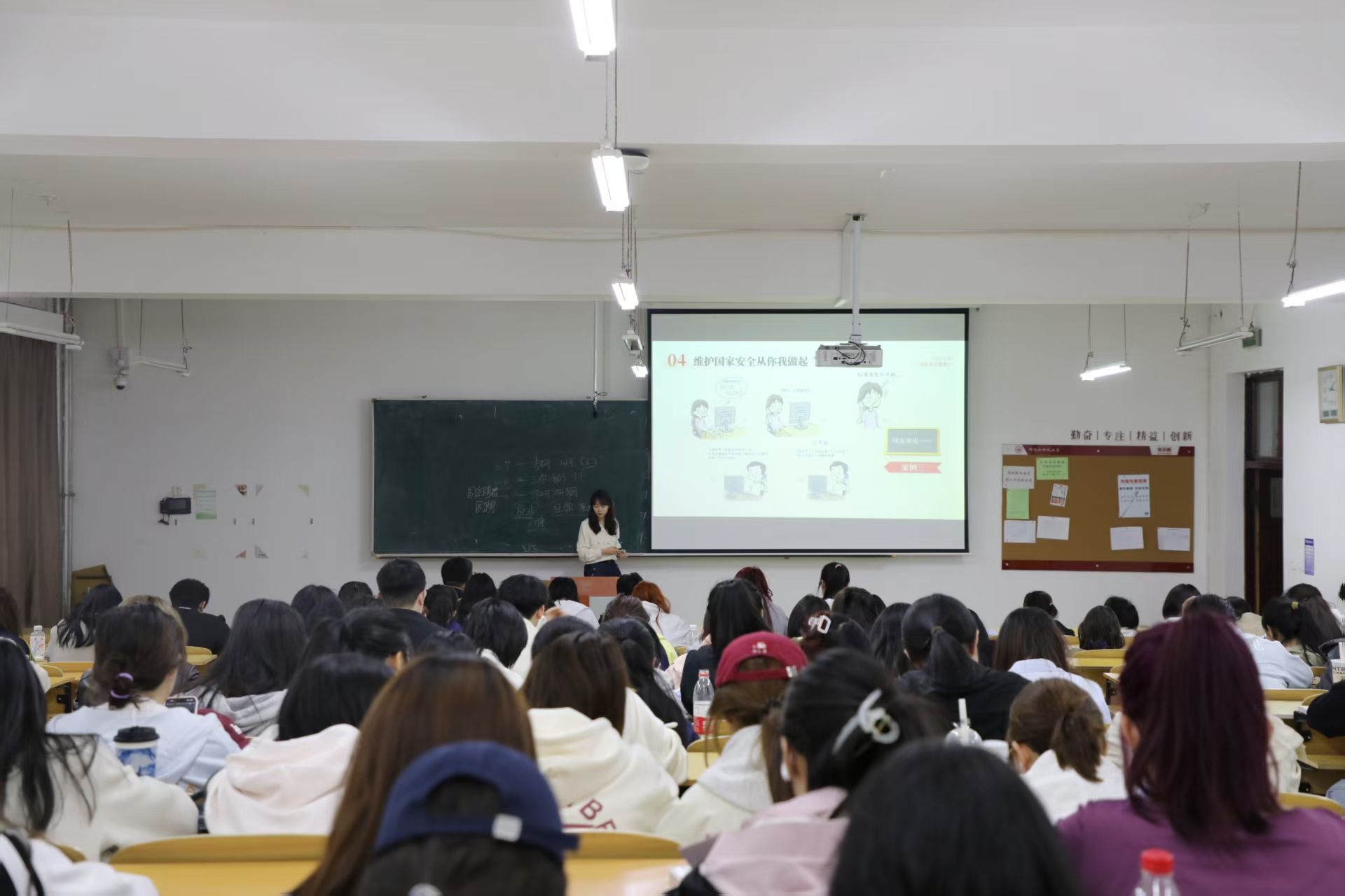 团委、国安青铸辅导员工作室联合开展“铸牢国安防线,共绘青春蓝图”国家安全教育“七进”活动。4月11日,在理工二号楼137教室,学校就业指导处兼职教师、学院团委副书记龚泳霖老师将国家安全教育知识带入了2024级化学化工学院劳动教育与职业发展课堂中。