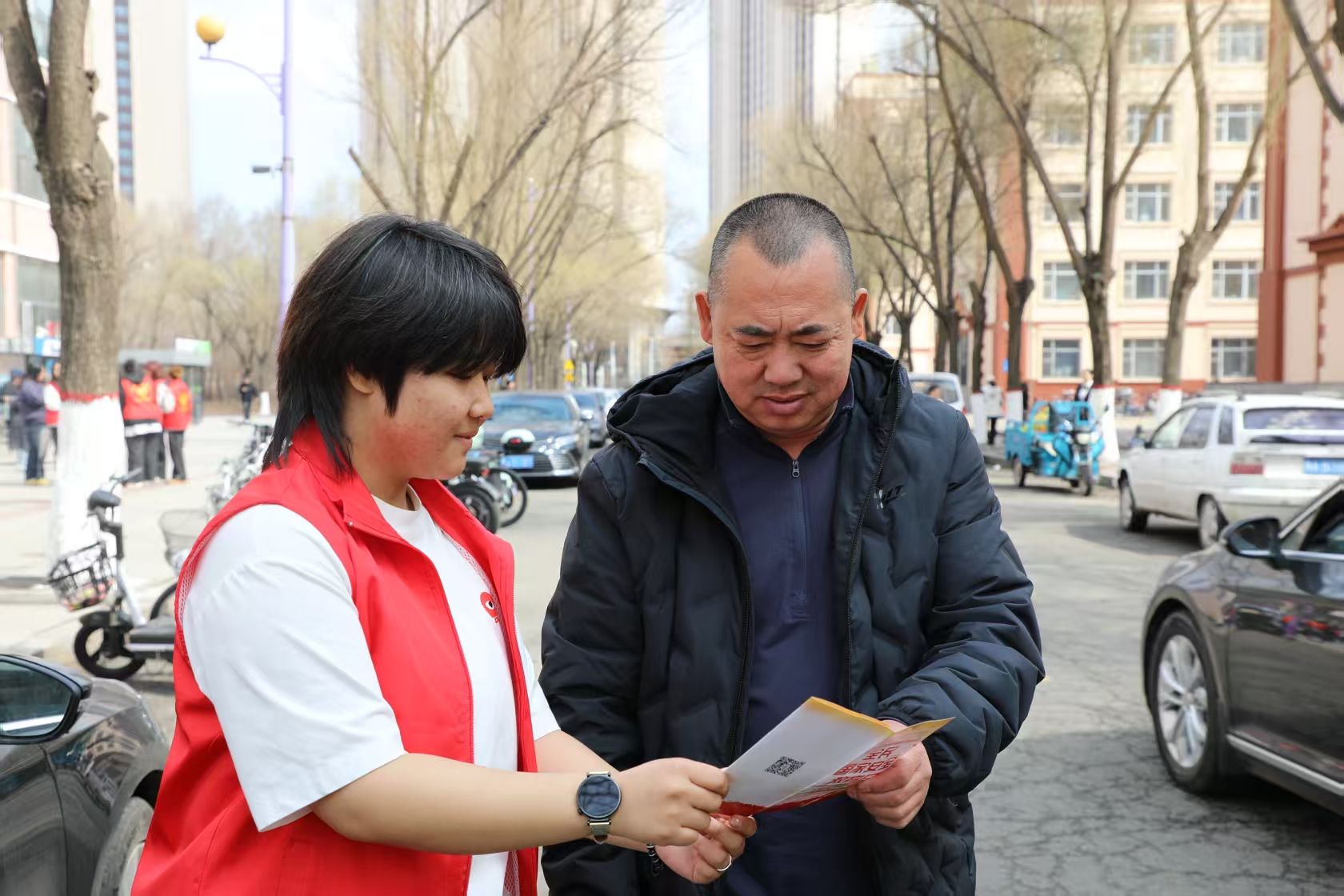 团委、青年志愿者协会、国安青铸辅导员工作室于4月14日在哈尔滨师范大学江北校区食堂滨湖园联合开展“铸牢国安防线,共绘青春蓝图”国家安全教育“七进”之进食堂活动。学院团委副书记、工作室主持人龚泳霖、院青协指导教师金东旭带领20余名志愿者参加活动。