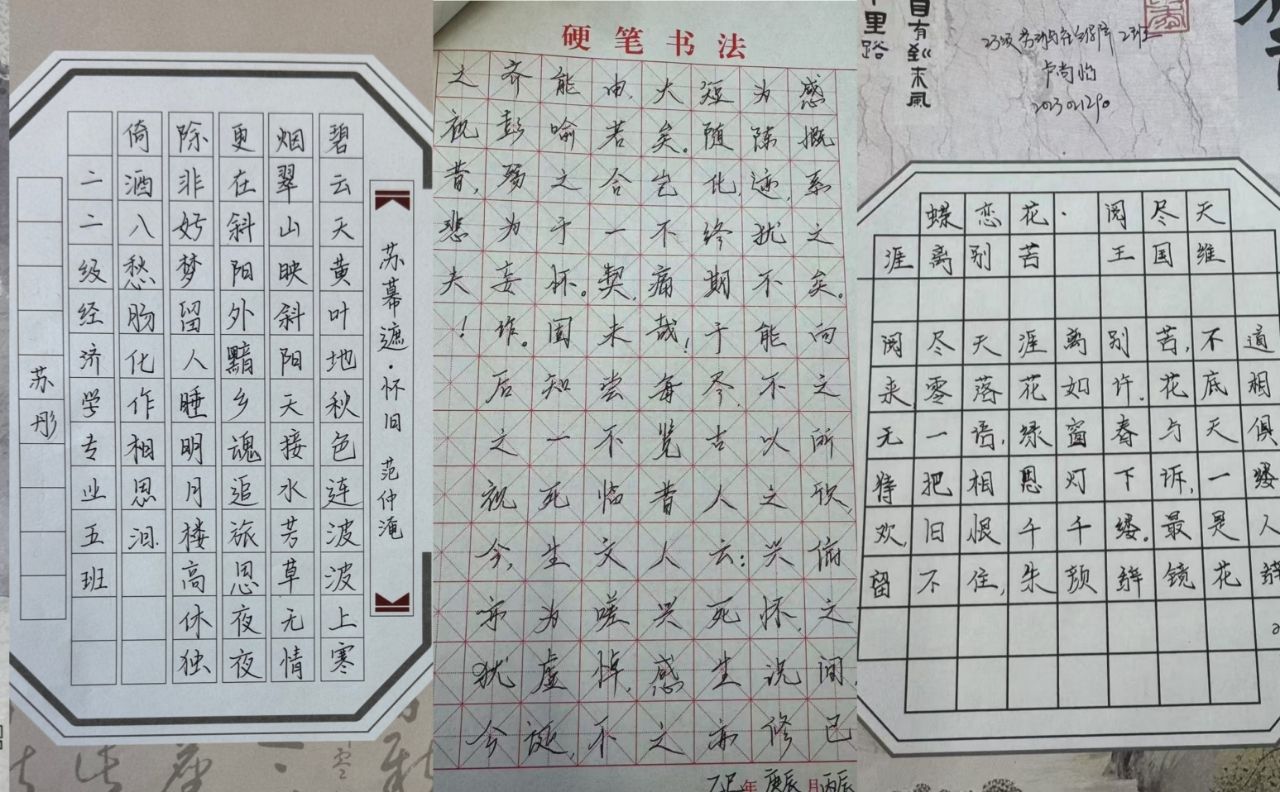 学生会举办以“墨香盈卷帙 雅韵润心田”为主题的美文美句摘抄硬笔手书作品征集活动。本次活动以纸笔为舟,邀学院学子以翰墨为媒,在阅读中品味经典魅力,于书写中传承文化根脉,让千年文脉在笔尖流淌,为春日校园增添一缕书香雅意。