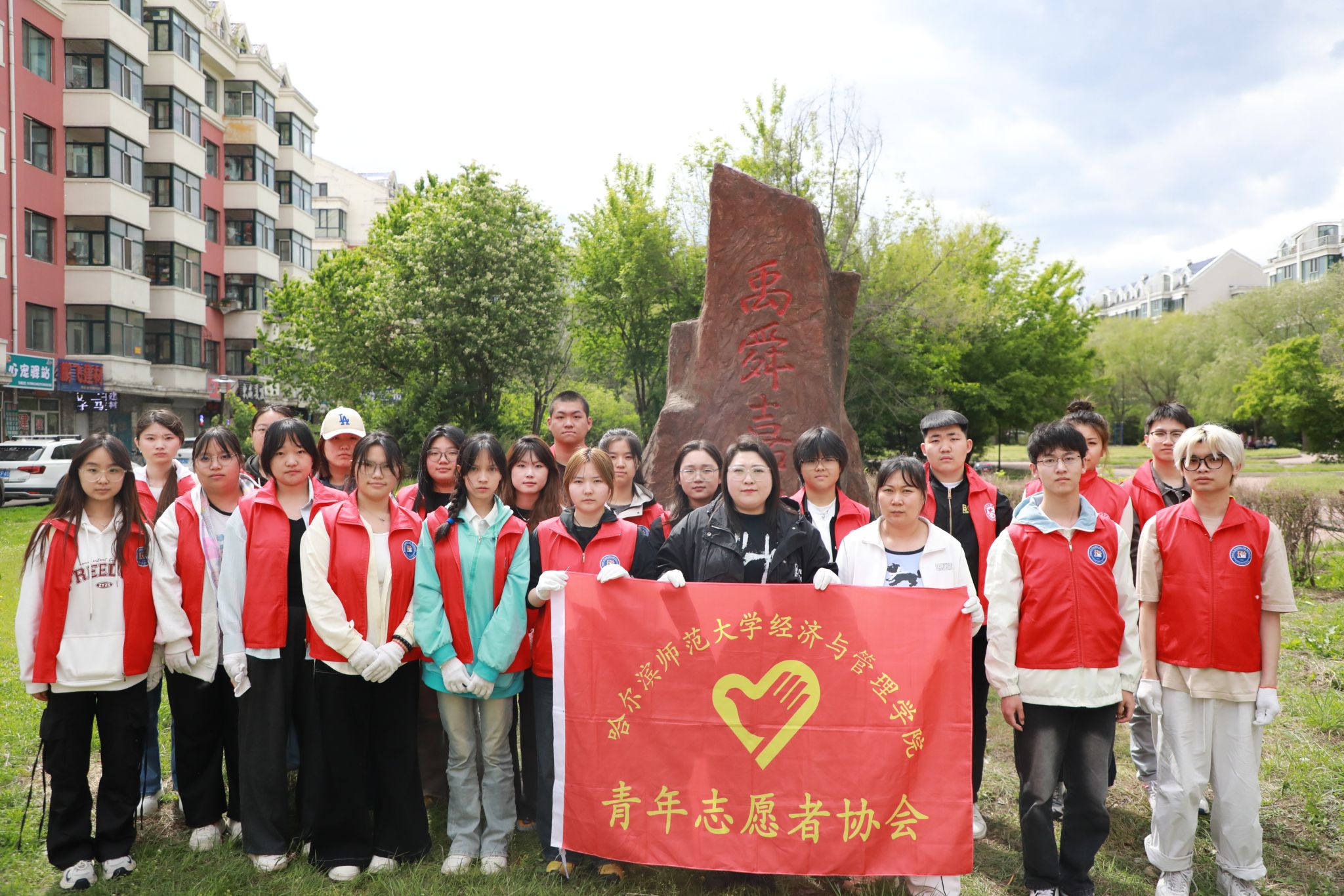 青年志愿者协会在学院路街道农垦社区开展了"党建引领聚合力,地校携手筑绿居"主题志愿活动,学院2023、2024级20余名志愿者参与本次志愿活动。活动通过栽花的方式,志愿者、社区工作者、居民代表共同挥洒汗水,用双手为社区种下一片缤纷色彩。