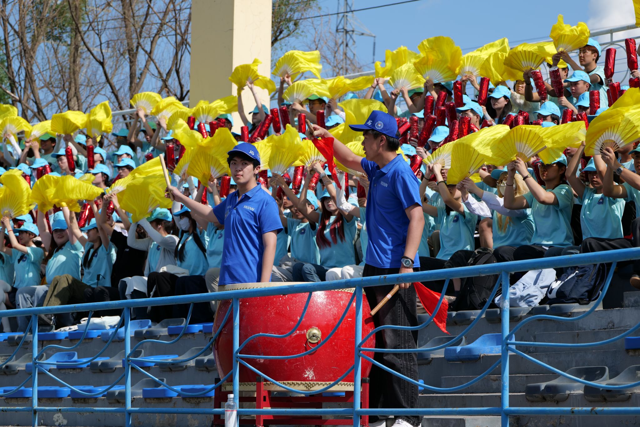 的鼓手团队宛若赛场跃动的脉搏。他们站在经管观众队伍的最前方,在铿锵的节奏中迸发出青春的张力。鼓点随赛事进程层层递进:疾如骤雨时,似战马踏破疆场;缓若溪流处,如星火点燃希望。他们的鼓声不仅是对运动员的鼓励,更是对团队精神的彰显。在这片热土上,鼓声与呐喊声交织,奏响了一曲青春与激情的交响乐。