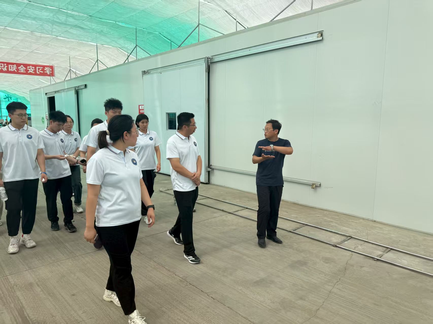 活动伊始,团队成员参观了庆丰农场水稻智能育秧工厂。庆丰农场第五管理区党支部书记王海彬向团队成员详细演示了智能化管控流程。此外,工厂内配备了先进的智能化育秧设备,包括水稻暗化育秧箱、立式燃油蒸汽锅炉以及轨道电动运土车,这些设备显著提升了生产效率,并实现了作物生长的精细化管理。王书记介绍道:“集中供苗模式为农户统一提供优质秧苗,可在48小时内促使种子发芽生长,帮助农户节省4至7天的育秧时间。”同学们一边认真观察,一边就设备的运行原理、维护成本等问题向王书记踊跃提问,在交流中对农业智能化的认知得到了进一步深化。
