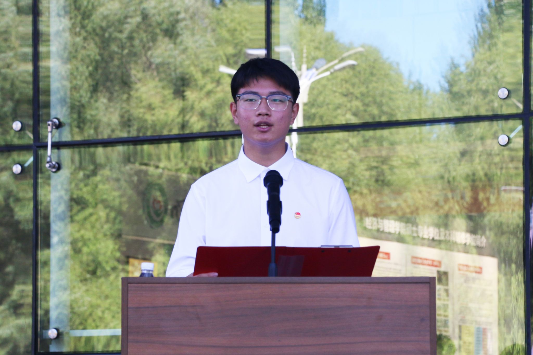 本科生新生代表、2025级物流管理专业刘桐瑞发言。他表示,在新征程上,要努力学习,积极进取,不断提升自己,为实现个人的梦想而拼搏,以优异的成绩回报学校的培养,在社会的舞台上绽放属于我们的光彩!