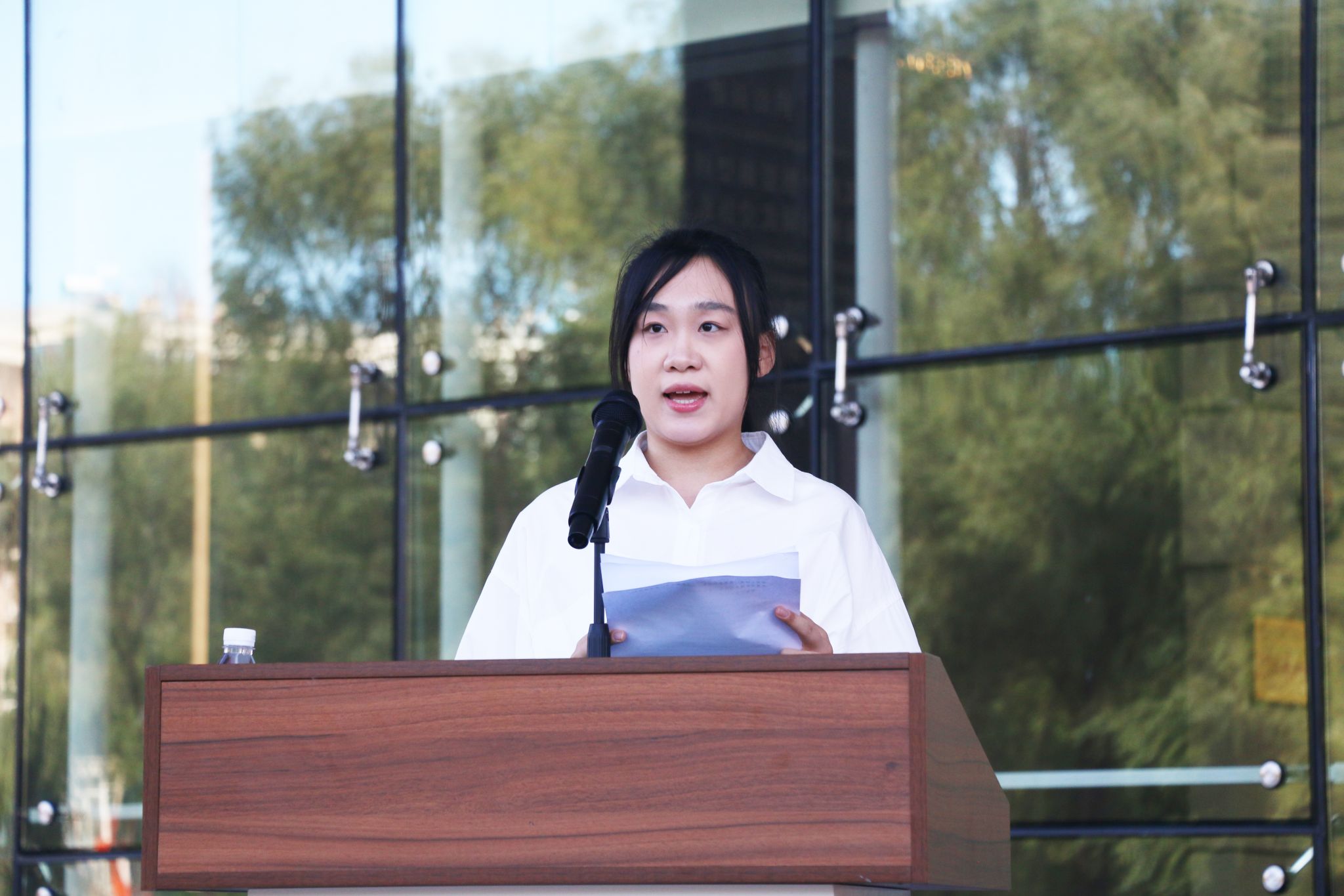 研究生新生代表、2025级会计学专业程馨发言。她表示,在未来要专注学业,矢志创新、励志笃行。怀着“道阻且长,行则将至”的信念,牢记习近平总书记的殷殷嘱托,在青春的赛道上奋力奔跑,争取跑出当代青年的好成绩!