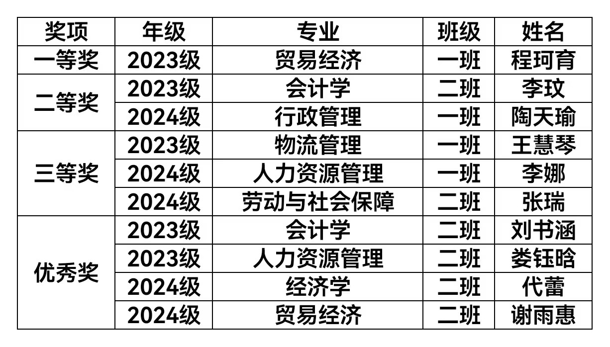 学院全体学生积极响应学院号召,共有59名同学踊跃参与,精心创作出一篇篇饱含深情的文章,字里行间展现着铸牢中华民族共同体意识的动人篇章,他们用文字挖掘出各民族交往交流交融中的温暖瞬间。活动期间,学院秉持公正、公平、公开的原则,严谨评选。经过层层筛选,最终从59篇中选出10篇获奖,评选出一等奖1名、二等奖2名、三等奖3名以及优秀奖4名。以下为获奖名单:
