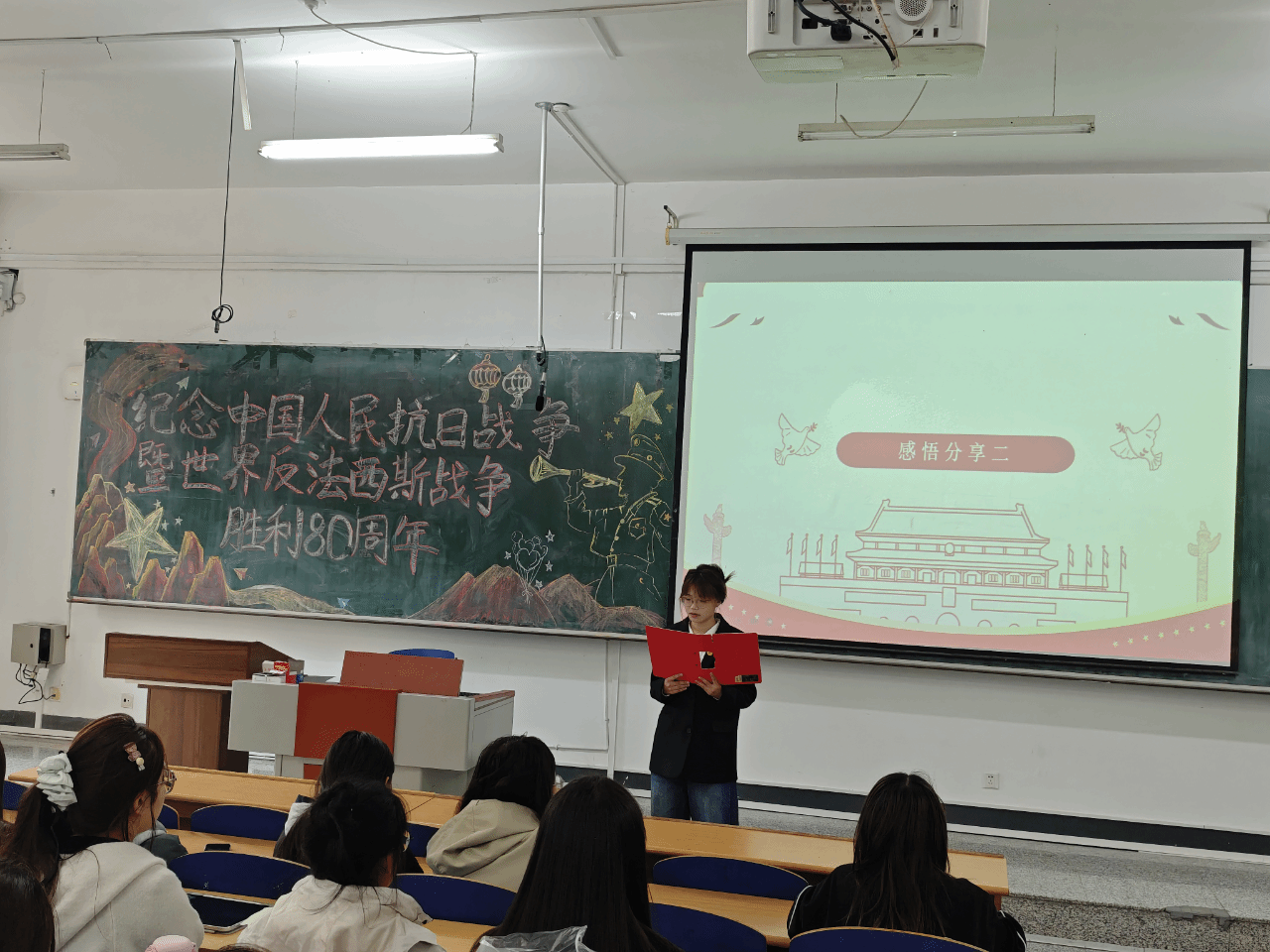 于10月11日在崇师楼D202举办了"铭记并肩的烽火 人类命运共担当"——纪念抗日暨世界反法西斯战争胜利80周年主题团日活动,学院团委书记陈凤,以及各专业学生共230人参加此次活动。