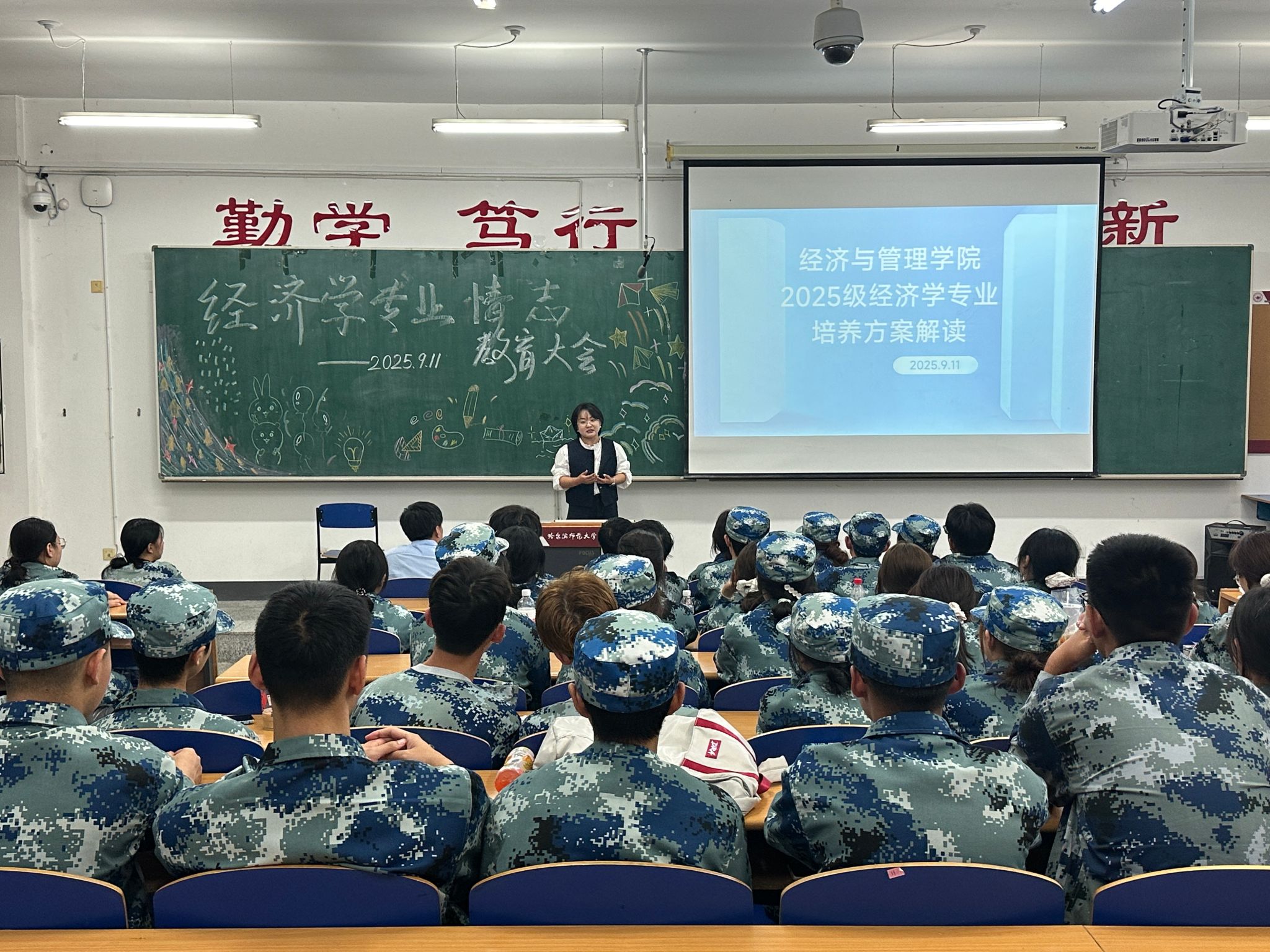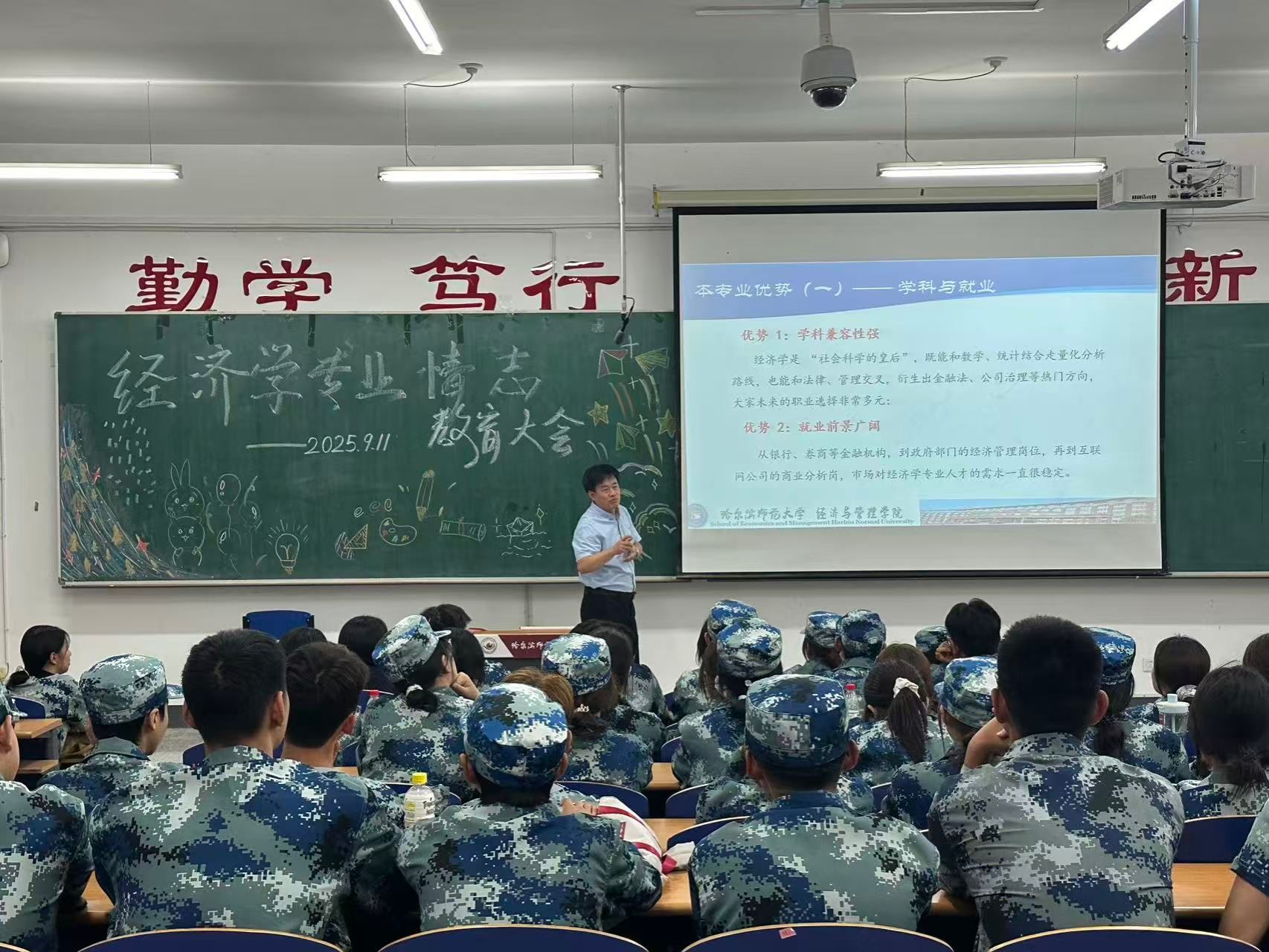 经济学专业的培养目标、师资等核心内容,及发展历程、就业升学等情况,帮助2025级经济学新生们全面了解专业,有效增强其专业认同感。此外,刘生老师还结合当下经济社会发展需求,深入分析了经济学专业聚焦数字经济、人工智能技术应用及现代金融服务业的独特优势,鼓励同学们树立“博文厚德 惟新致用”的职业追求,把握机遇、紧跟需求,将个人成长与国家发展紧密结合,积极投身经济学领域的学习与研究。