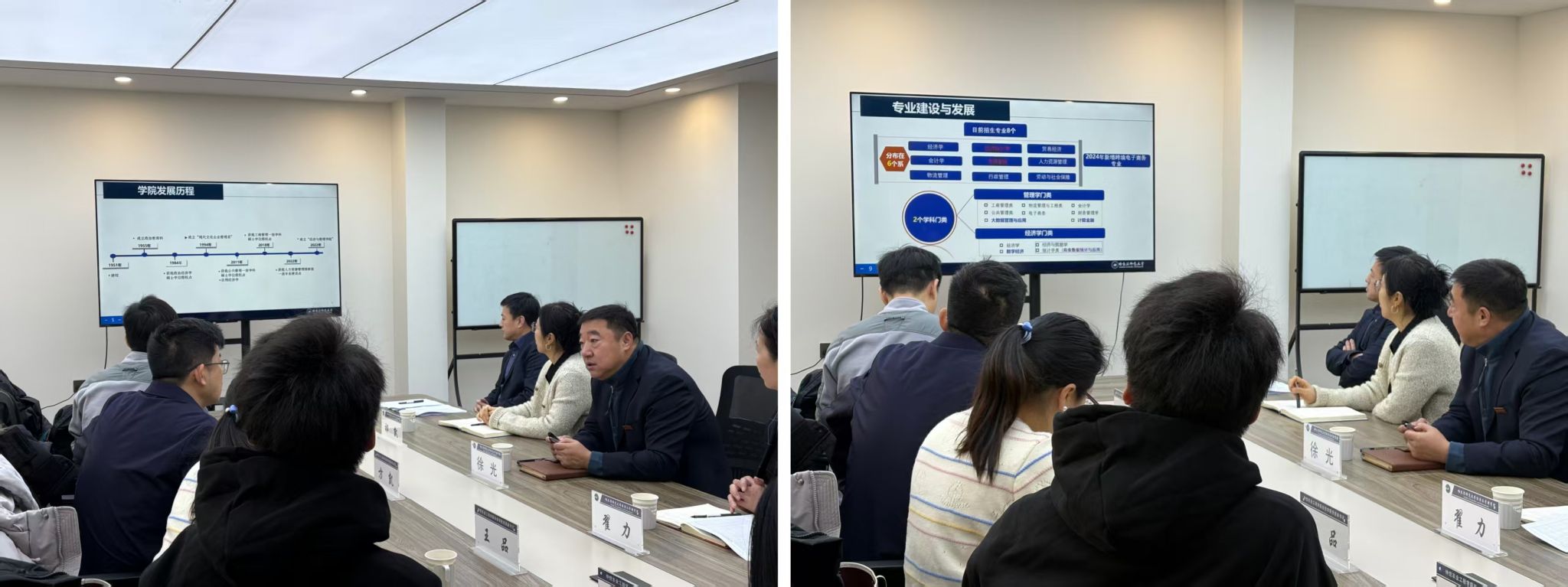 “2个学科门类、6个教学系、8个招生专业”的布局特色,重点介绍了学院在人才培养中构建的“三位一体”实践育人模式与思政建设成效,同时分享了学院在国际化教育推进与学术交流合作方面取得的成果。